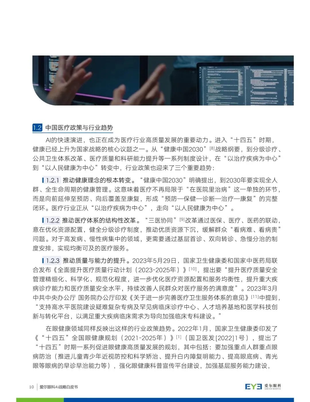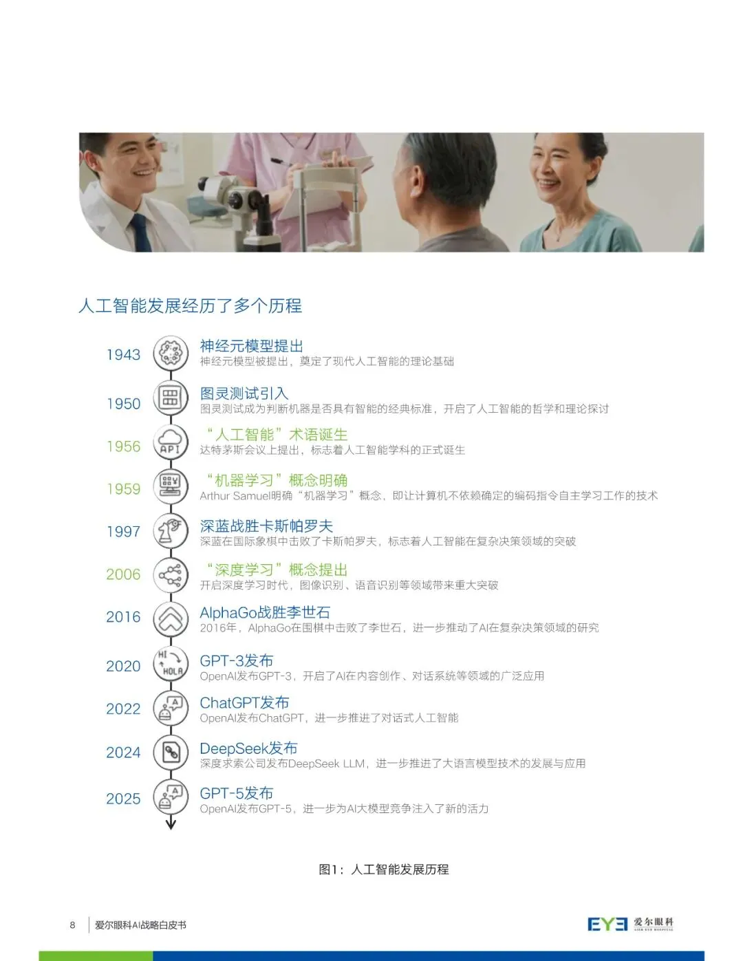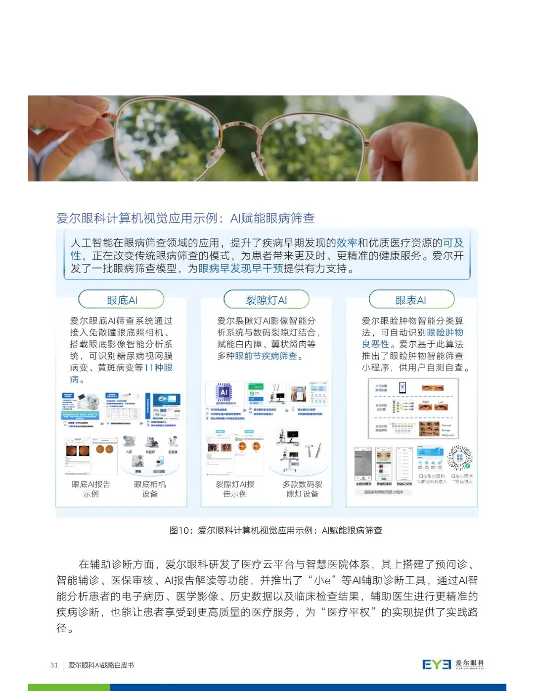 此外,白皮书还提出了爱尔眼科面向未来的AI战略蓝图,包括创新更有温度的AI智慧医院、重构未来眼健康的战略愿景,面向六大对象(社会大众、准患者、患者、医护技、员工、管理者)提供服务,以及通过开放合作和共创模式实现互利共赢的眼健康生态圈合作愿景。爱尔眼科希望通过AI技术提升医疗服务效率与质量,推动眼健康事业的全面进步,让患者受益于更安全和个性化的服务。