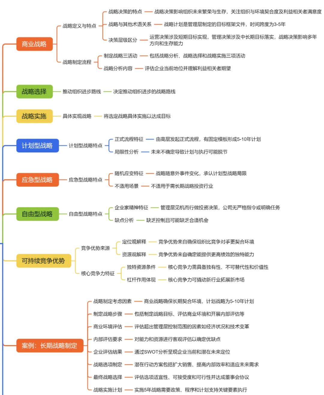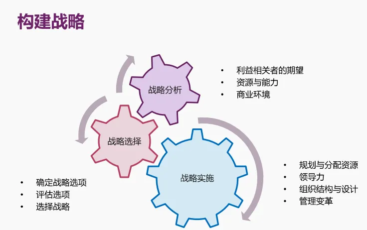 :长期大范围决策,影响企业方向与生存能力,需最高管理层审批。 - 战略制定的要素: