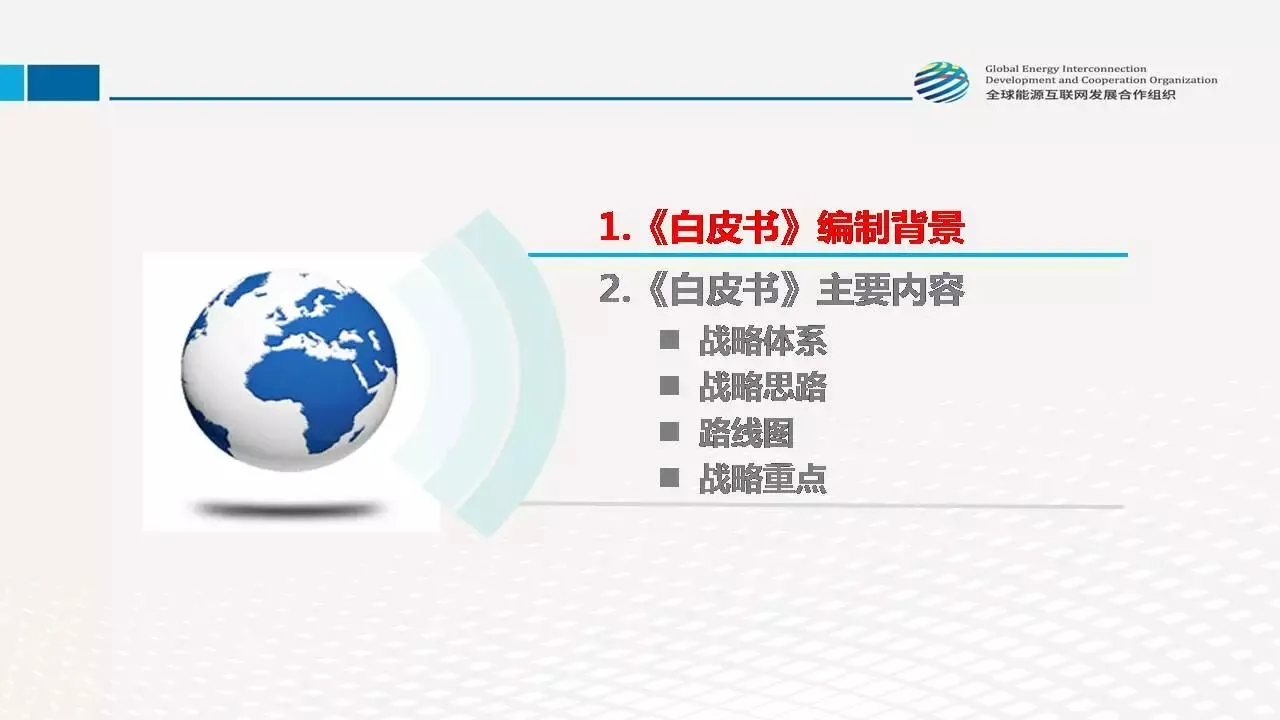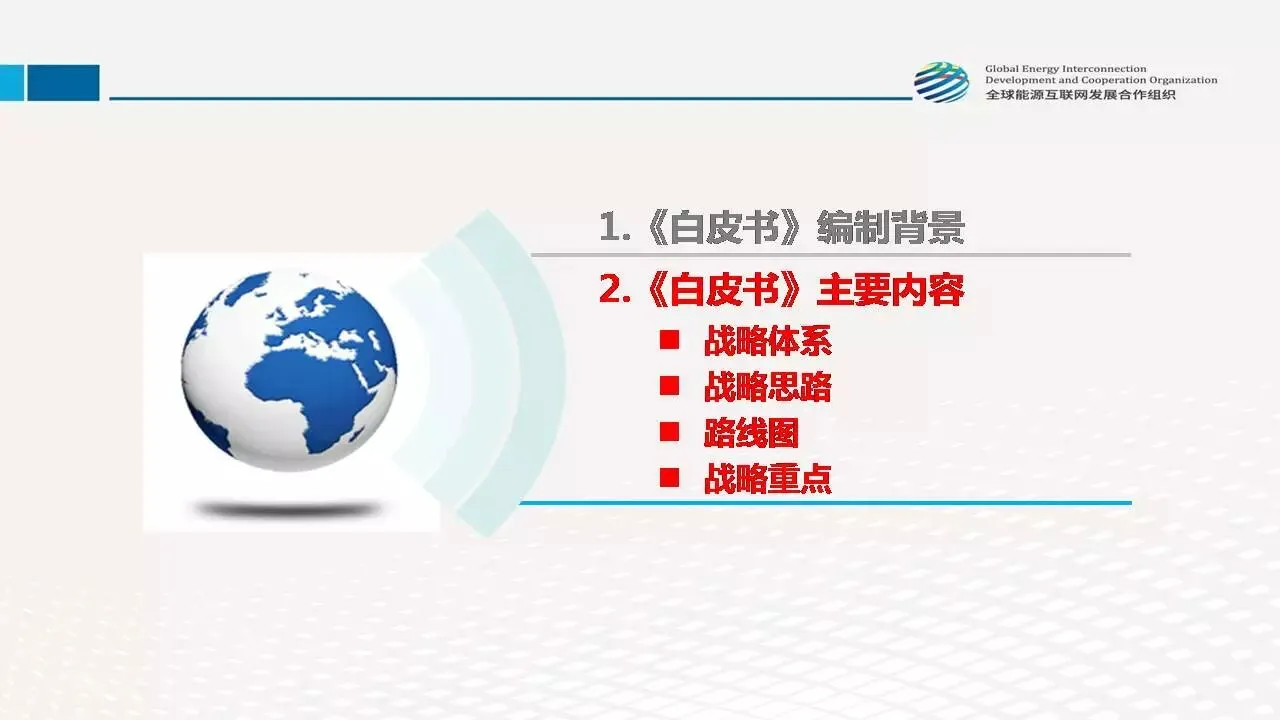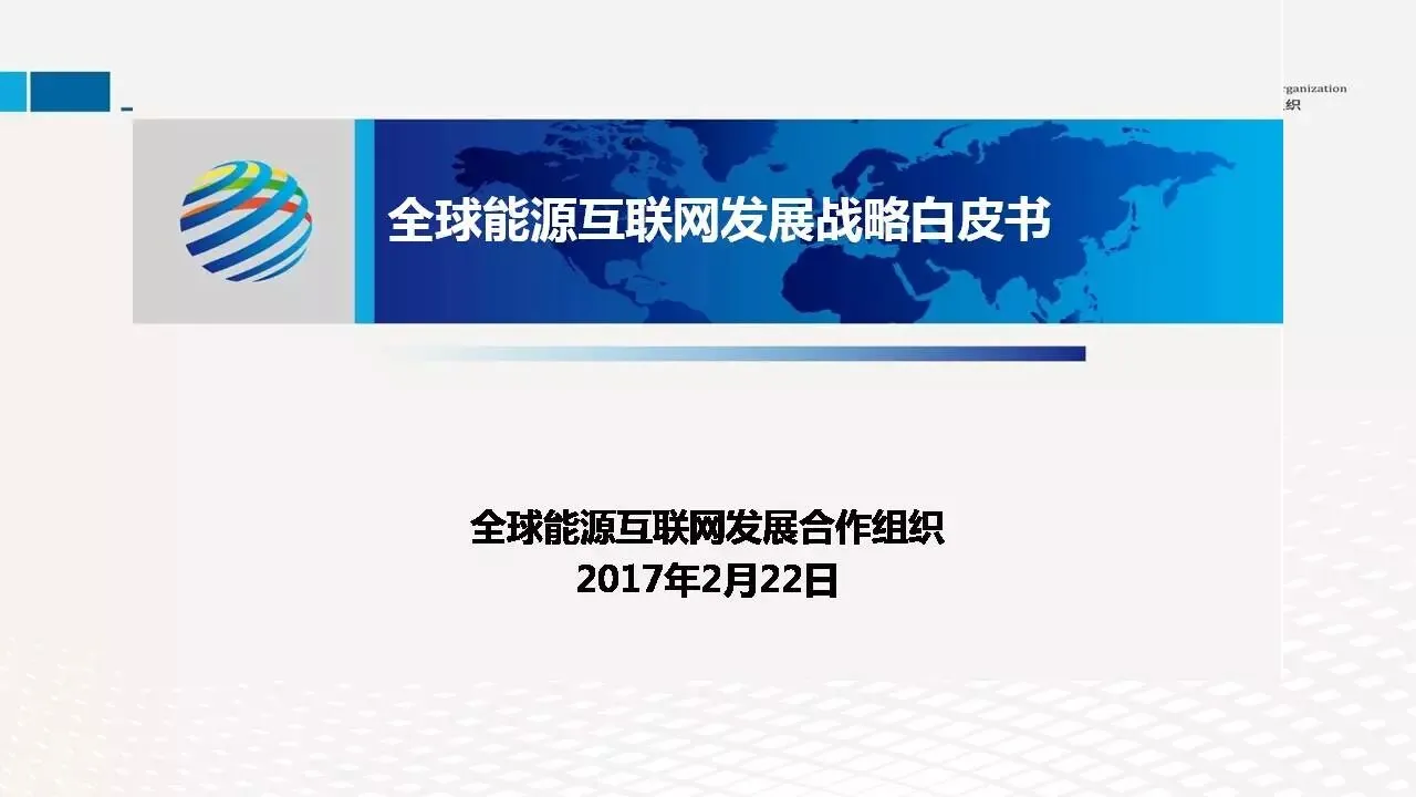 2月22日,全球能源互联网发展合作组织在北京发布《全球能源互联网发展战略白皮书》(以下简称《白皮书》),提出分国内互联、洲内互联和洲际互联三个阶段构建全球能源互联网的路线图。会上还发布了《跨国跨洲电网互联技术与展望》和《全球能源互联网发展与展望(2017)》。