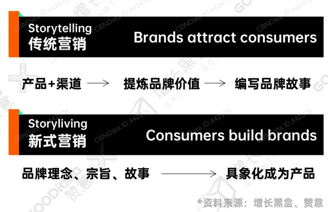 传统品牌是先做产品再通过广告去讲品牌故事,本质是产品、需求驱动的。而白皮书提到的storyliving则是基于品牌与消费者的双向互动原则,与其共同打造品牌,制造他们需要的产品。