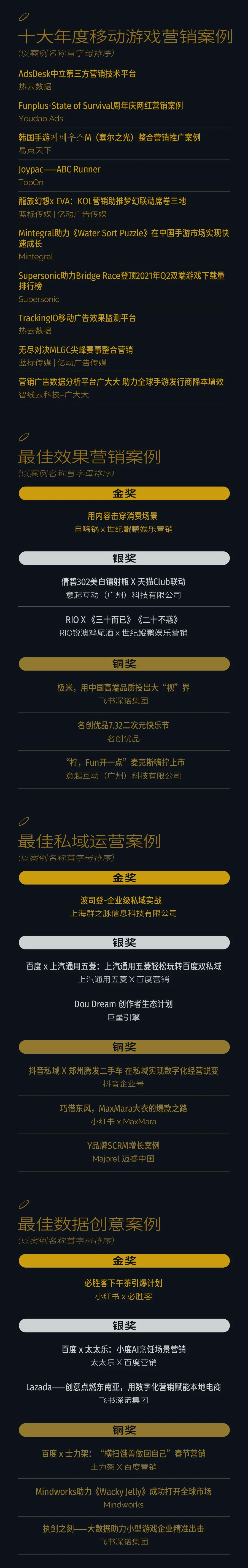 (飞书深诺集团创始人兼CEO沈晨岗为年度十大移动游戏营销案例获奖品牌颁奖)