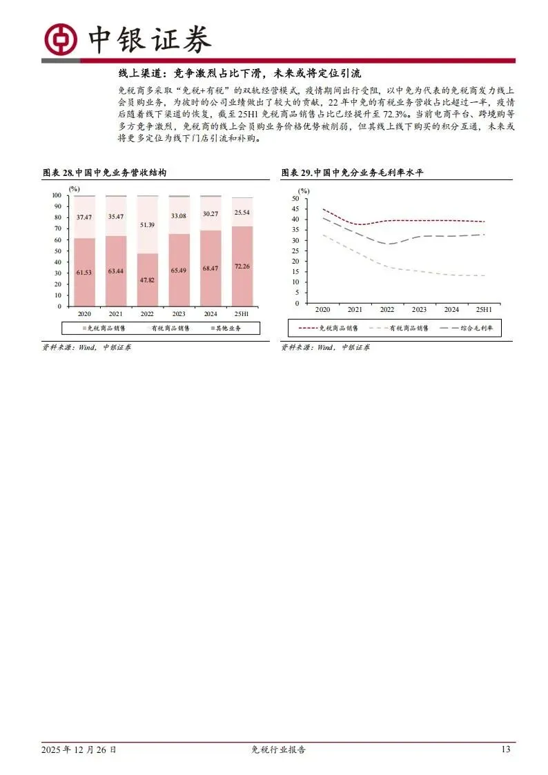 中免作为行业领头羊,依然维持着极强的市场控制力。其在海南省拥有6家离岛免税店,并自持全球最大的两个免税综合体。在机场渠道,中免不仅锁定了北上两大机场的核心标段,还通过入股中出服提前占领了市内店的先机,并与全球1600个品牌建立了稳定的供应关系。数据显示,2025年上半年中免的免税商品销售占比已回升至72.3%,告别了疫情期间高度依赖线上有税业务的情况,经营质量明显提升。