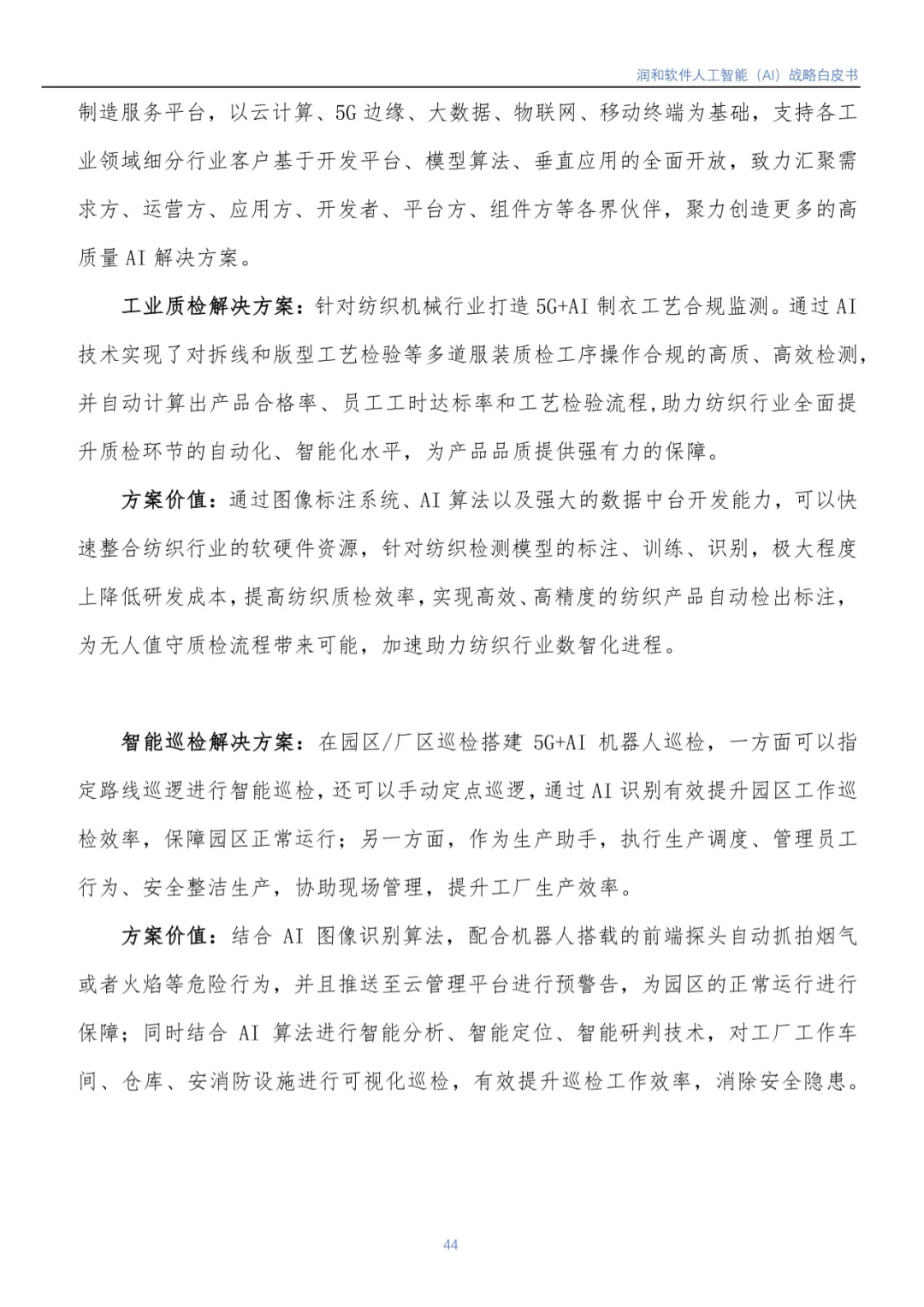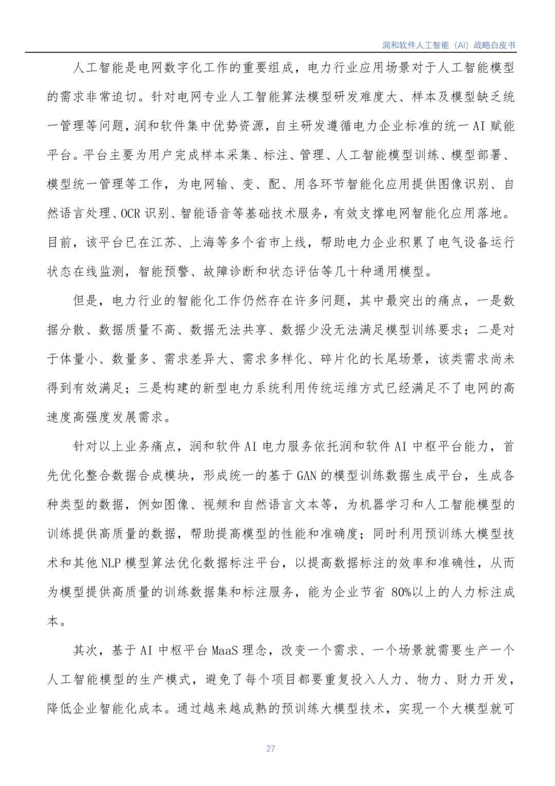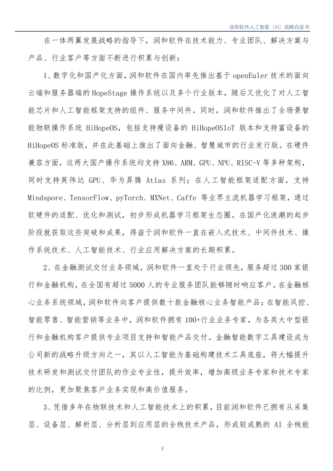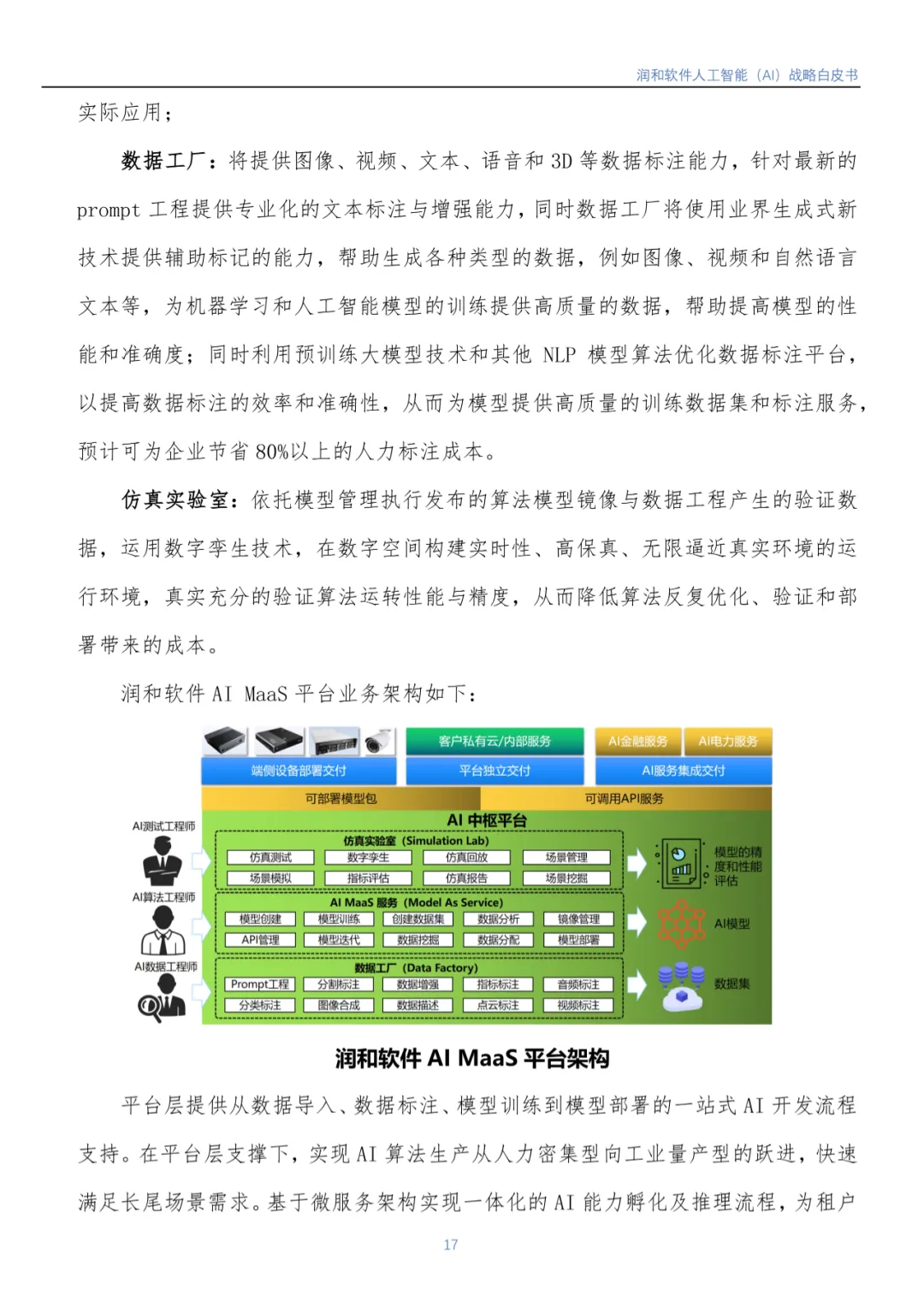 近日,江苏润和软件股份有限公司(以下简称润和软件)编写的《润和软件人工智能(AI)战略白皮书》(以下简称《白皮书》)正式发布。《白皮书》基于润和软件在人工智能领域的实践,从行业市场发展背景到润和软件人工智能发展战略、人工智能发展规划(包括AI平台、智能服务、智慧解决方案)等方面进行了全面介绍。