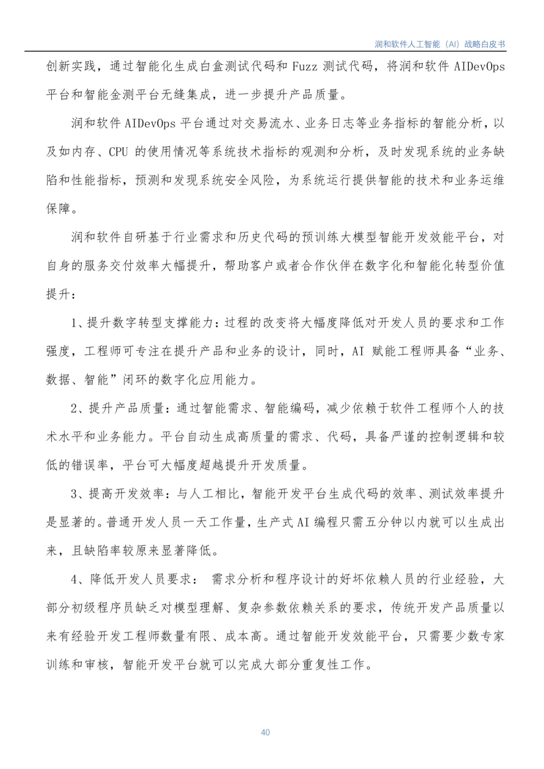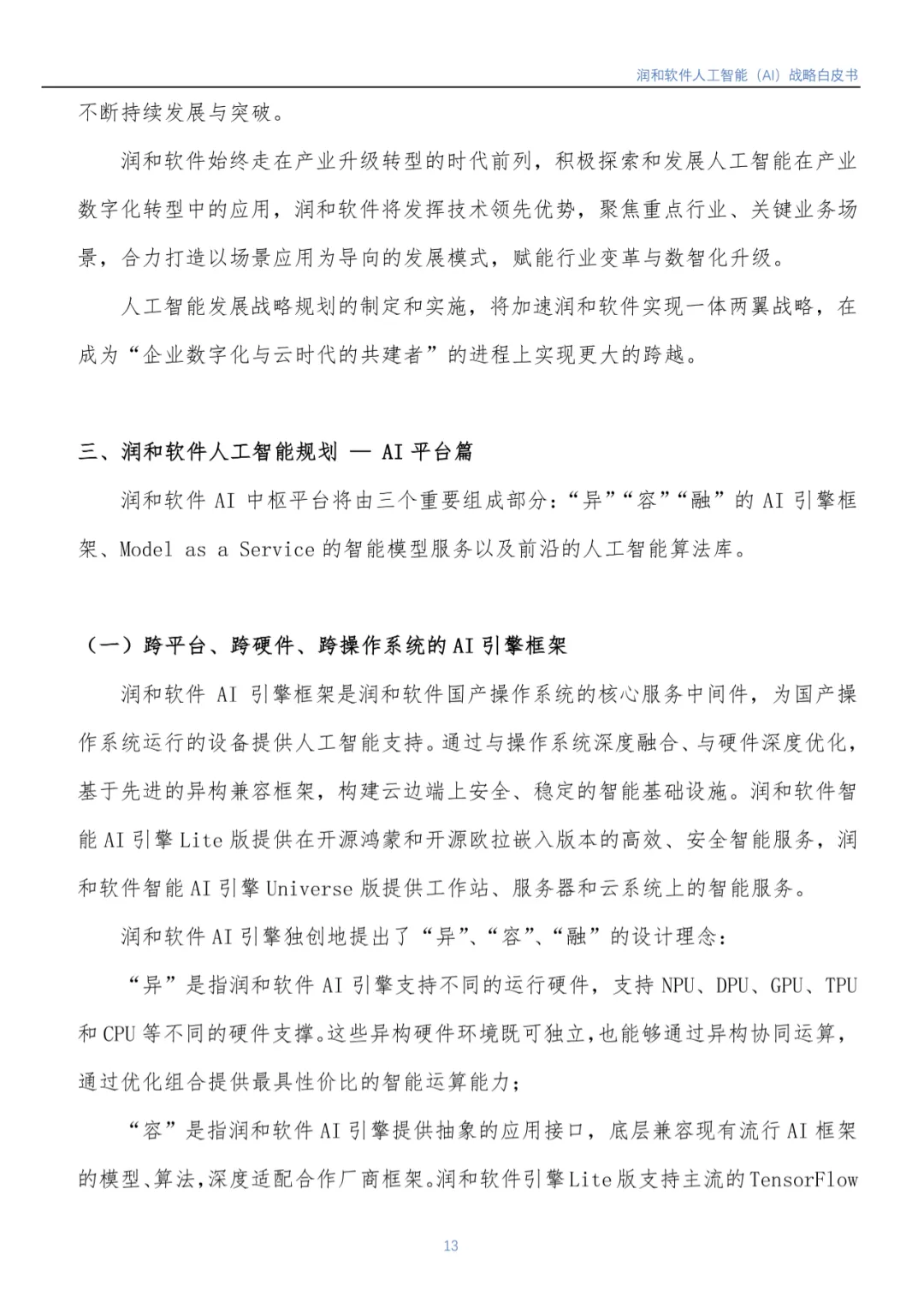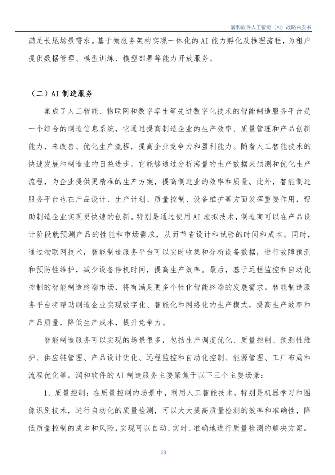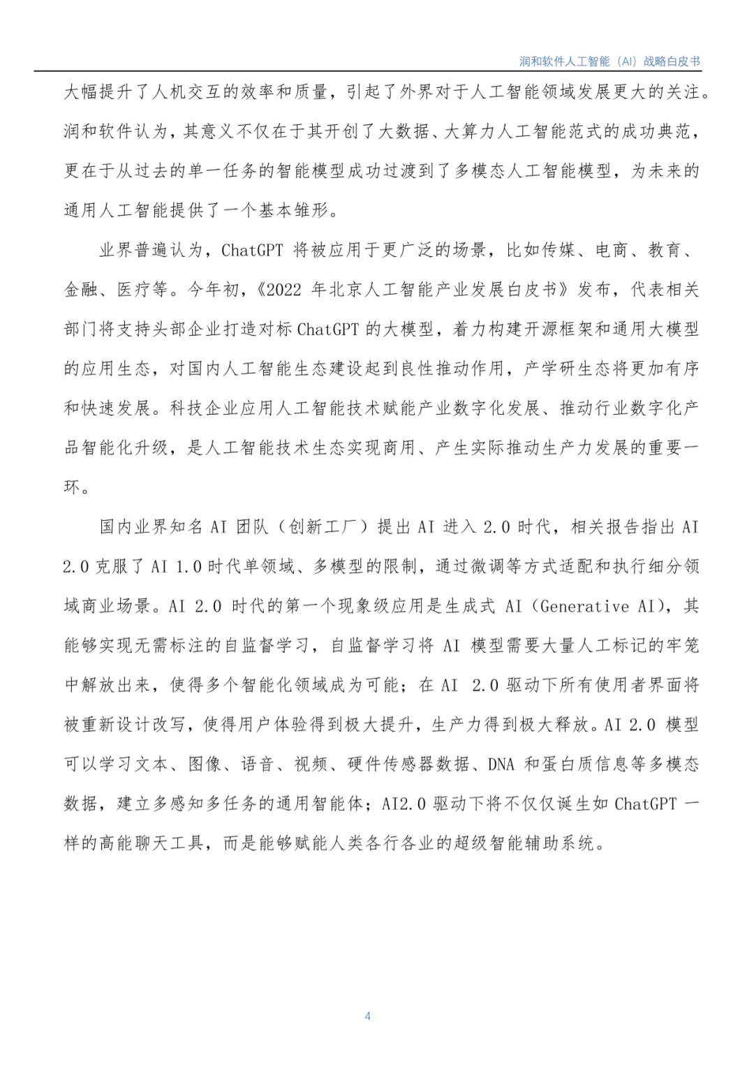 近日,江苏润和软件股份有限公司(以下简称润和软件)编写的《润和软件人工智能(AI)战略白皮书》(以下简称《白皮书》)正式发布。《白皮书》基于润和软件在人工智能领域的实践,从行业市场发展背景到润和软件人工智能发展战略、人工智能发展规划(包括AI平台、智能服务、智慧解决方案)等方面进行了全面介绍。
