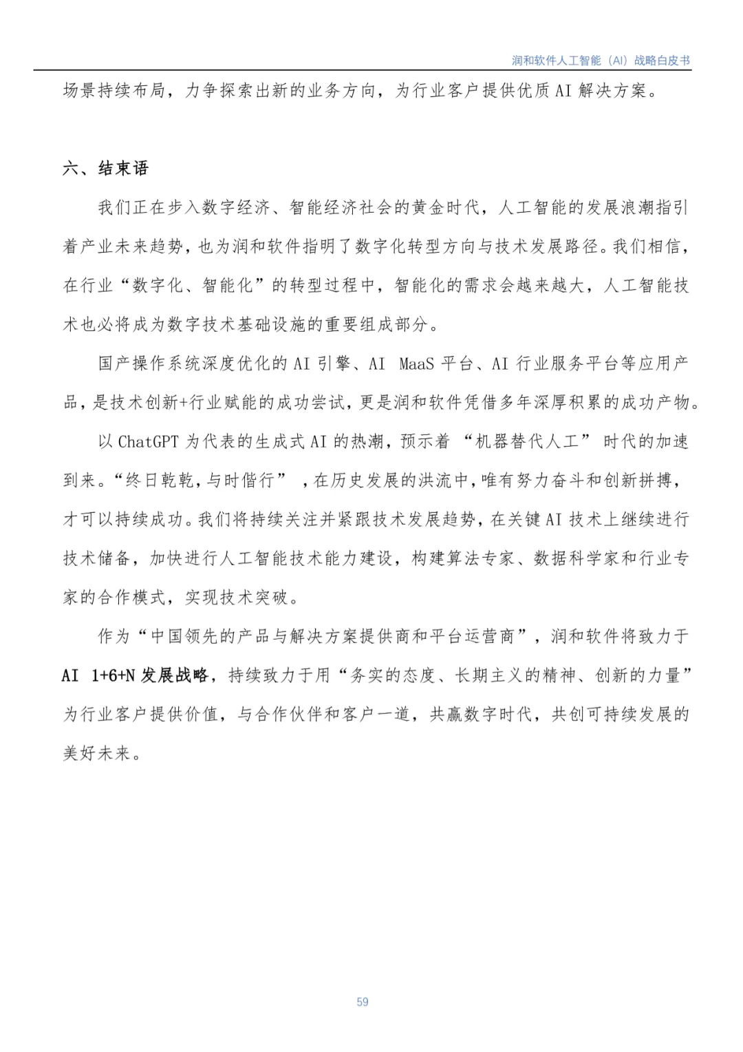 作为“中国领先的产品与解决方案提供商和平台运营商”,润和软件将持续致力于 AI 1+6+N 发展战略,用“务实的态度、长期主义的精神、创新的力量” 为行业客户提供价值,与合作伙伴和客户一道,共赢数字时代,共创可持续发展的美好未来。