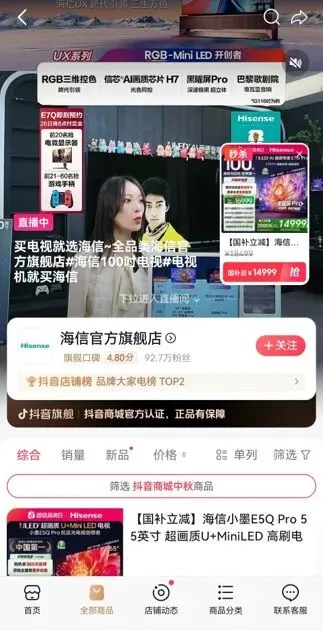 2025年上半年海信自有渠道新开专卖店1821家,专卖店收入同比增长18%;新兴渠道加强内容电商生态共建,实现全域流量整合及高净值人群触达,挖掘存量市场新增长极,其中抖音渠道上半年收入同比增长51%,复购且主动推荐的5A人群资产同比增长82%。