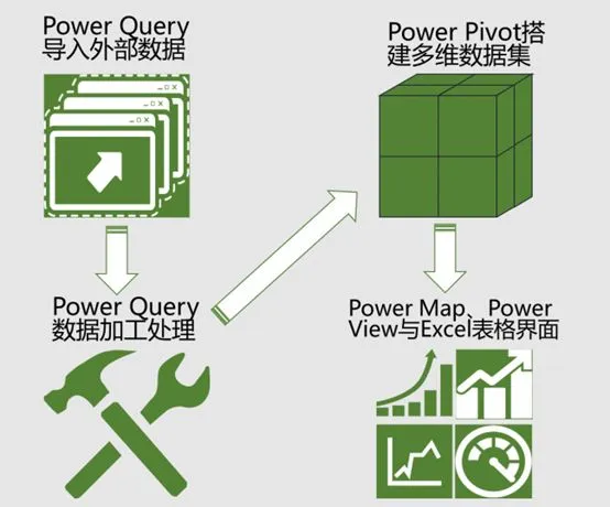 简单来说,PowerBI是微软为强化自身产品商业智能功能而开发的工具集。其中供Excel使用的主要插件工具包括Power Query、 Power Pivot、 Power View及PowerMap等。这些插件工具均由微软免费提供,适用于Excel 2010以上版本。Power BI插件帮助Excel完成从表格工具到BI工具的华丽转变。