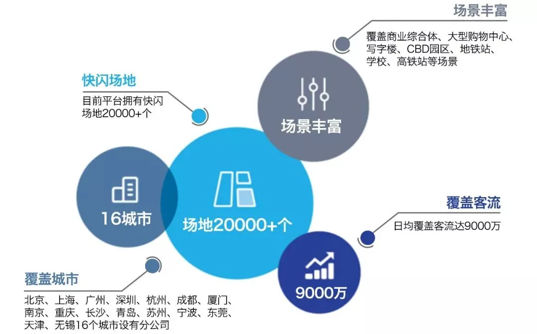 团队成员有前阿里产品委员会秘书长、有阿里旅行的创始运营老大,成立4年来,已为汽车、房产、3C、美妆、日化、食品、服装、英语教育、互联网平台等5000多家各类消费类行业标杆客户提供快闪场地选址服务,目前在全国16个省会城市开设有直营分支机构,整体资源规模覆盖量是行业2345名总和,是国内快闪场地赛道绝对领跑者,也是唯一一家覆盖商超、写字楼、社区、地铁、超市、景区、乐园等各类场景的全场景快闪场地平台。