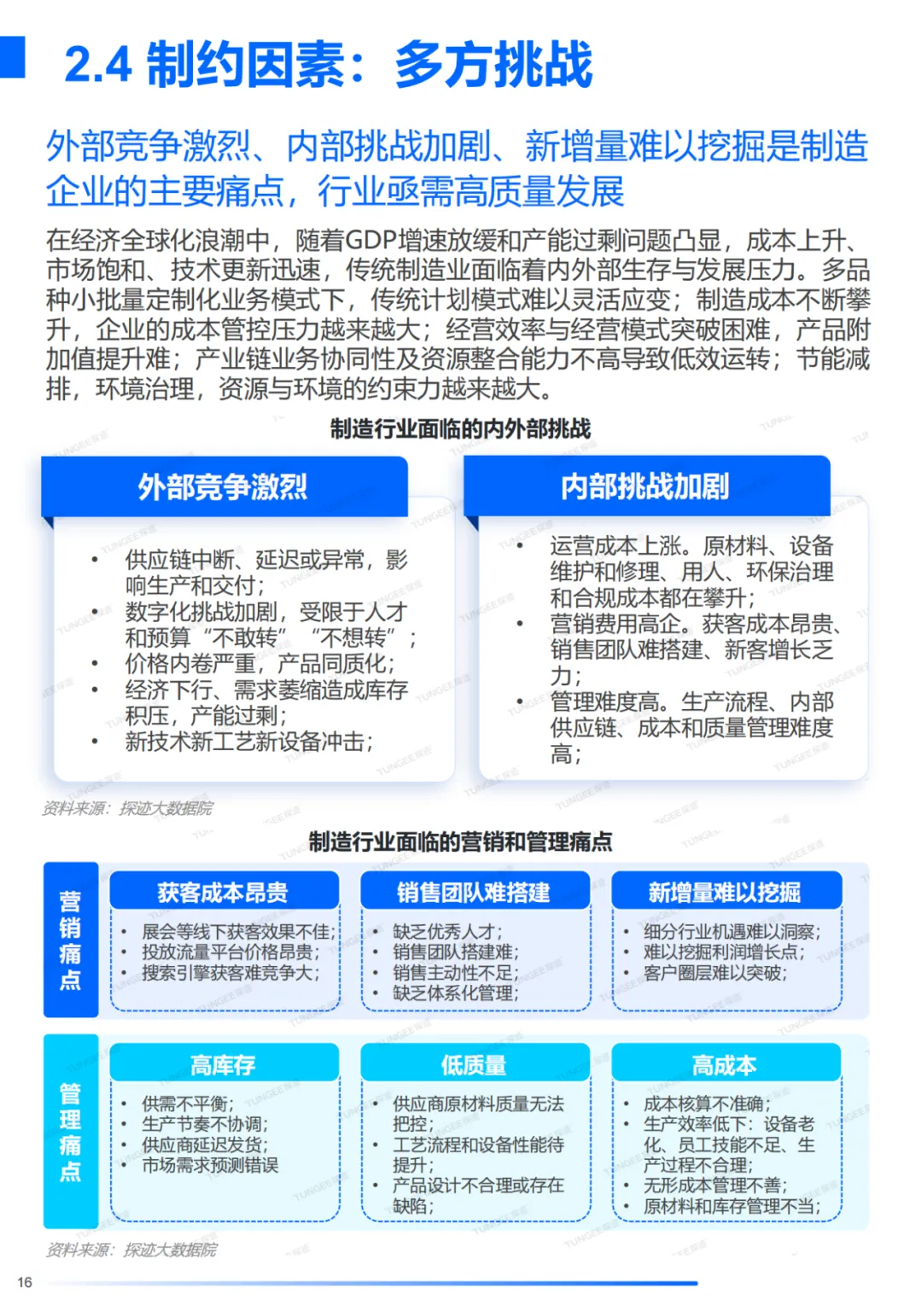 制造业是我国国民经济的支柱,为我国的经济高速发展起到主要的推动作用。在全球经济更加复杂的环境下,我国制造业发展迎来了严峻的挑战。国际政治周期新旧交叠,全球分工秩序遭受冲击,产业链裂痕持续加深;人口周期出现分化,劳动力数量与质量影响竞争红利;诸多技术从成熟度曲线的萌芽期走向过热,创新资源争夺日趋激烈;时代之变、历史之变,滔滔如浪,扑面而来,百年之大变局在加速演进。