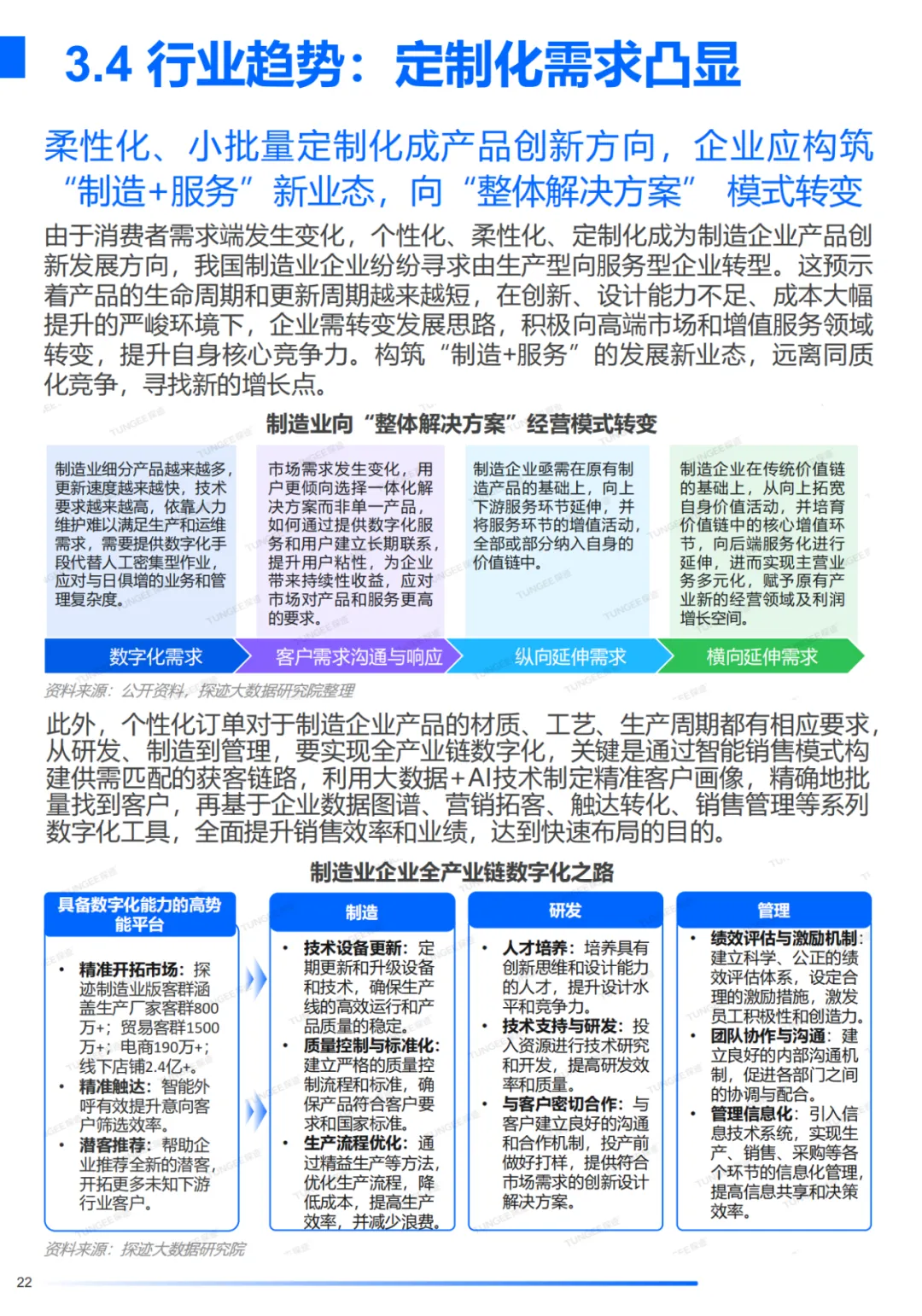 观点5:个性化、柔性化定制成产品创新方向,企业应构筑“制造+服务”新业态,向“整体解决方案”转型。