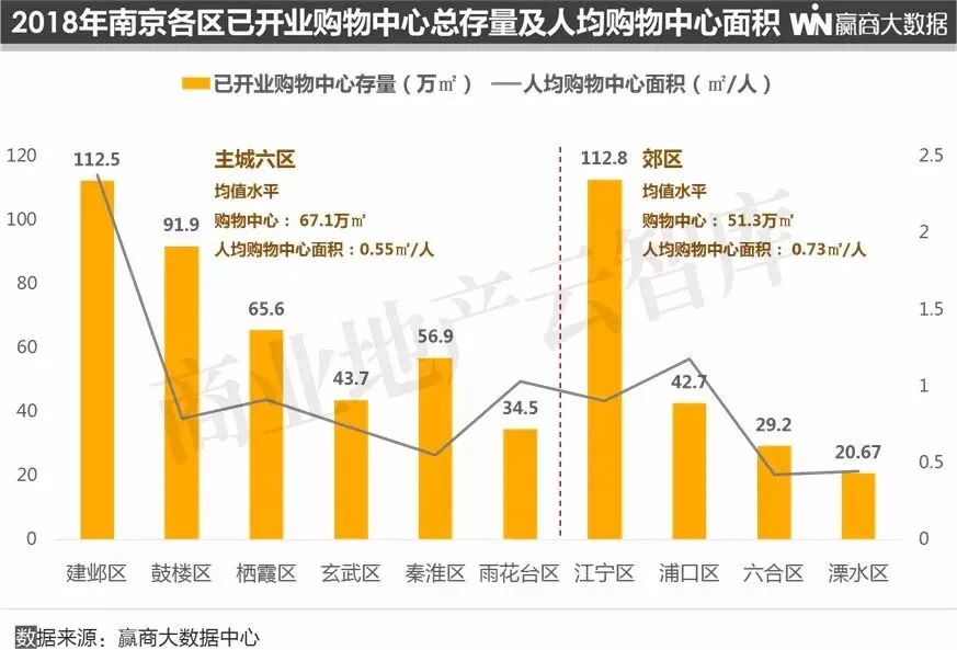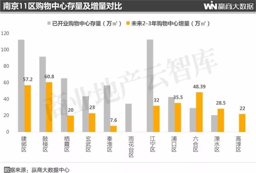 未来市场机会主要在秦淮区、六合区、溧水区等人均购物中心面积较低的区域。