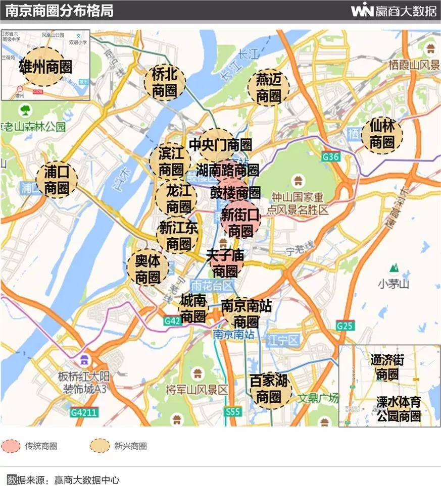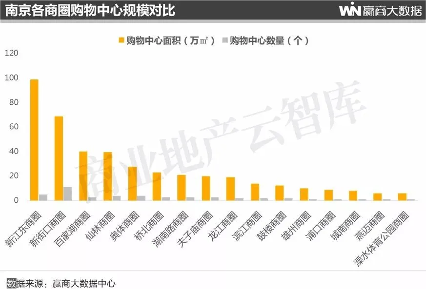 已形成多商圈格局,新江东商圈规模全市第一,新街口商圈龙头地位依然坚挺