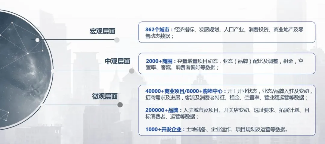 ■ 最大程度满足商业地产全产业链客户的数据需求