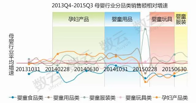 孕妇产品在2014年上半年成为热门,随后是婴童用品,进入2015年,婴童玩具活跃了一段时间,目前这三个品类的增速都有回落,但婴童服装还保持着相对高速增长,独领风骚。