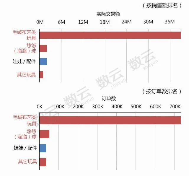 在2015年淘宝婴童玩具的子类目中,毛绒布艺类玩具的销售额和交易量均高居榜首。