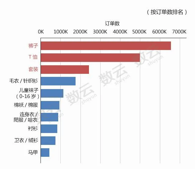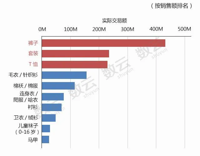 在2015年淘宝童装的子类目中,裤子的销售额和交易量均高居榜首。