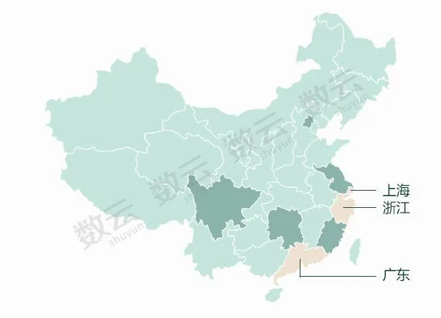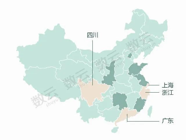 婴童食品店铺比较集中在沿海经济比较发达的区域以及部分内陆地区,其中占据销售额Top的省份分别为上海、浙江省、广东省、四川省。