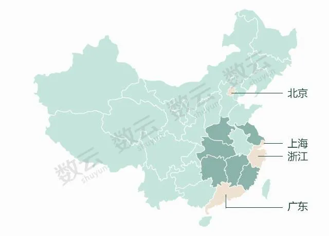 婴童用品店铺比较集中在沿海经济比较发达的区域以及部分内陆地区,其中占据销售额Top的省份分别为上海、广东省、北京、浙江省。