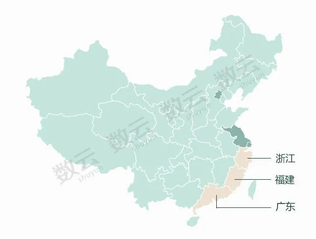 童鞋店铺比较集中在东南沿海经济比较发达的区域,其中占据销售额Top的省份分别为浙江省、福建省、广东省。