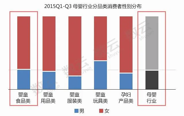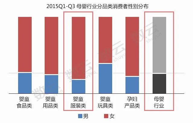 母婴行业的消费者以女性为主,且女性的比例还在提高,而女性比例最高的是婴童服装和孕妇产品。