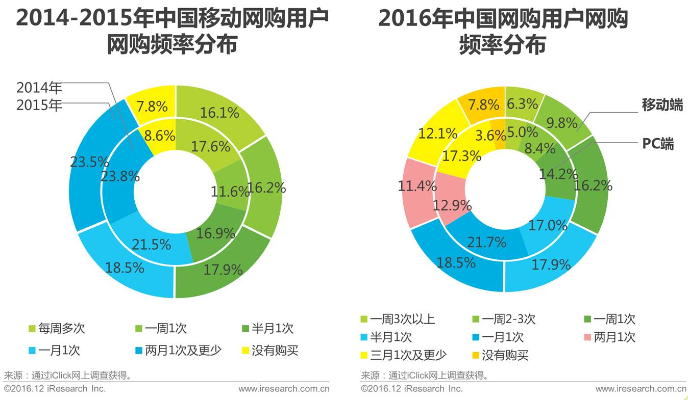移动端频率高于PC端,每周移动网购的用户近1/3