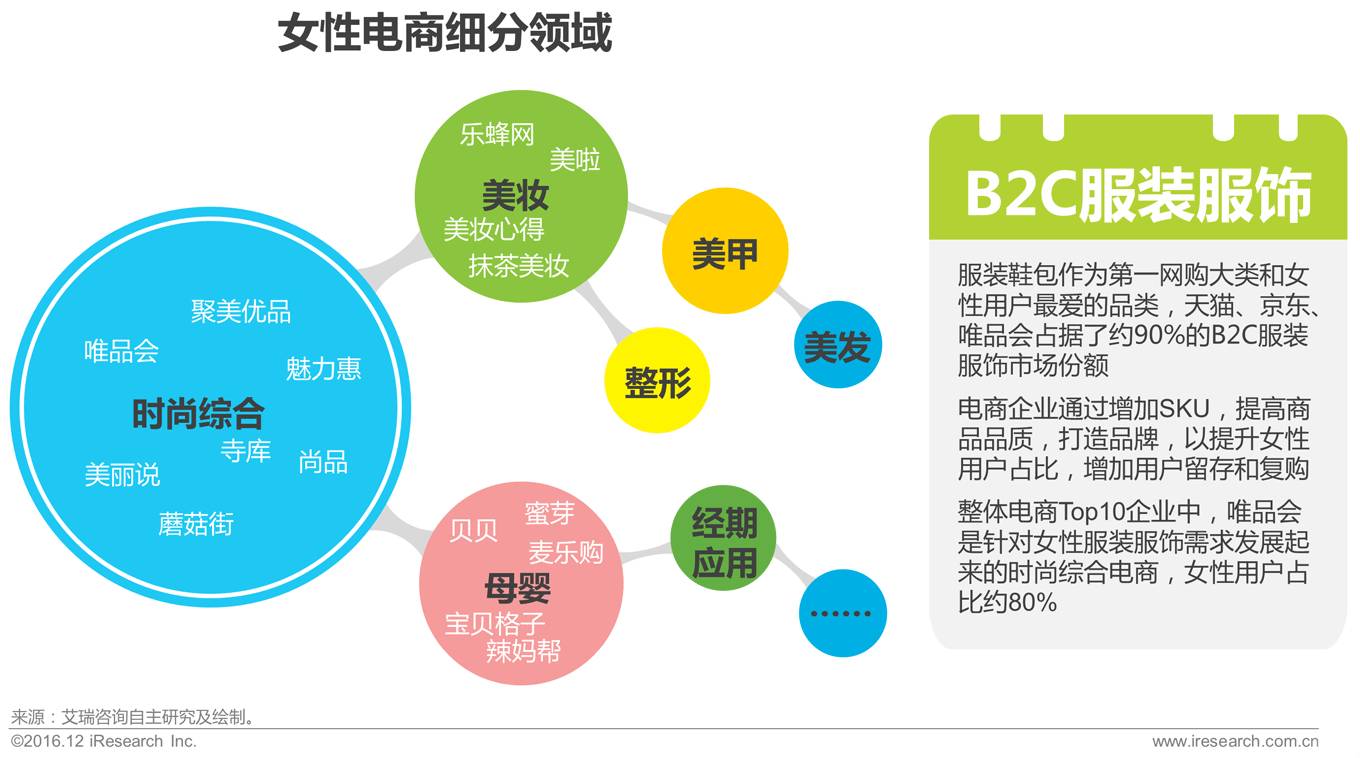 虽然女性电商多处于发展初期,但仍受到资本市场大量关注。从垂直领域来看,服饰和美妆类是女性电商发展较成熟的领域,而母婴用户则更倾向于在综合性电商平台进行网购;随着跨境电商兴起,海淘类女性垂直电商也异军突起。