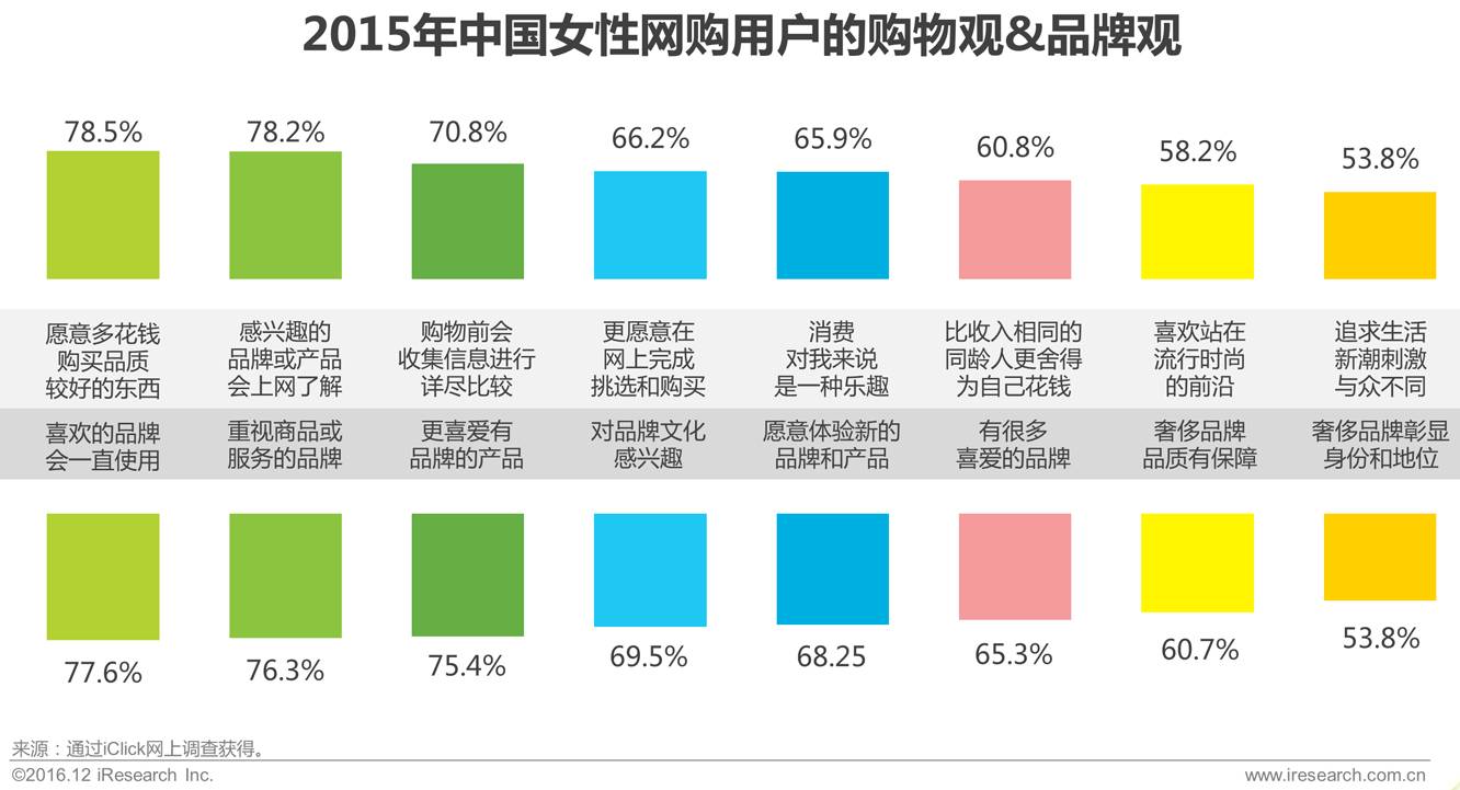 近八成女性网购用户愿意为品质付出高价,但仍有追求物美价廉的需求,多数女性看到感兴趣的品牌或产品会主动上网了解,并在购买前进行详尽比较。
