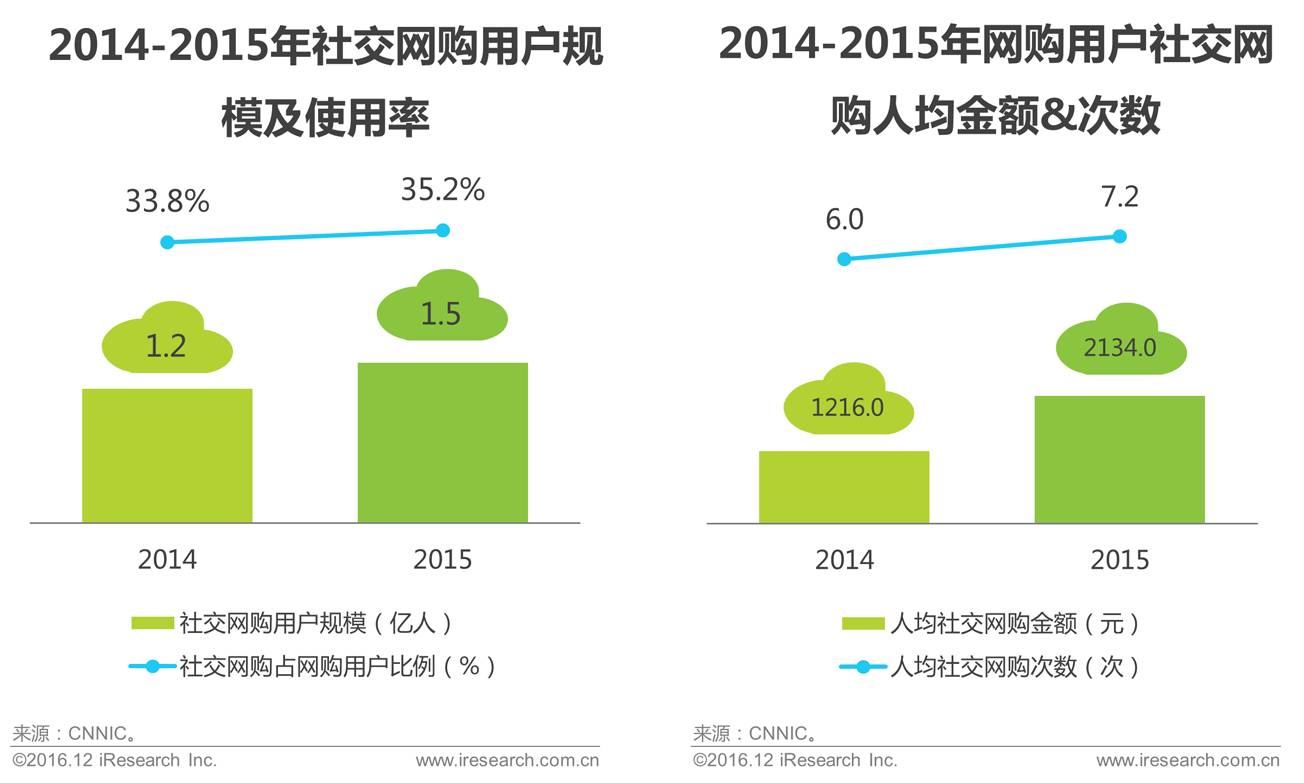2015年社交网购用户1.5亿,人均消费2134.0元