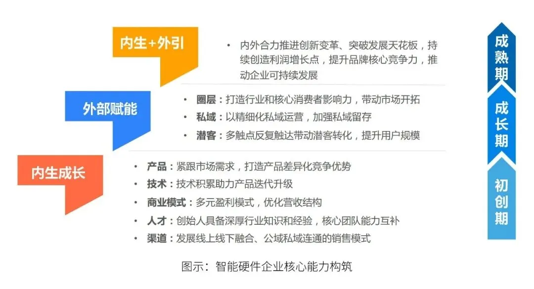 尤其智能硬件作为数字产业化的重要组成部分,是否能够持续盈利并创造业务新增长点的经营能力,是企业增长内生动力,也是影响资本关注的关键点。在数字经济时代,竞争已经跳脱出人才、技术、产品、商业模式的基础维度,能够实现“内生”与“外引”贯通的全域经营成为必备趋势——构筑品牌私域、积累数据分析反馈至企业策略,在市场心智中提前锚定未来消费力,使得企业保持长期竞争力。