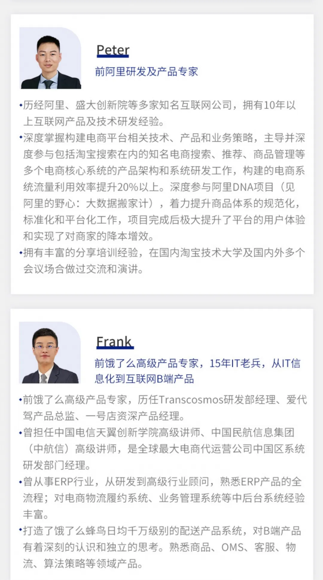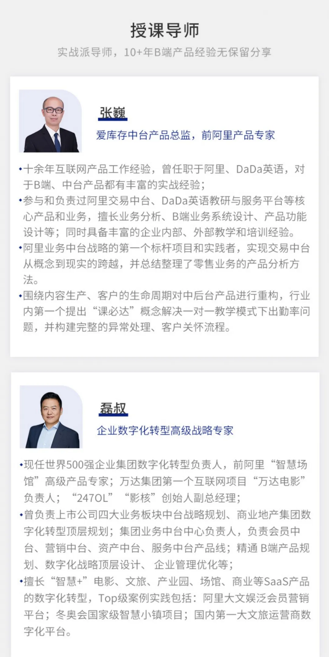于是,我们在一线互联网公司产品专家/总监以上职位,且有操盘过丰富大体量项目的候选导师中,不断筛选、寻找最合适的人选。