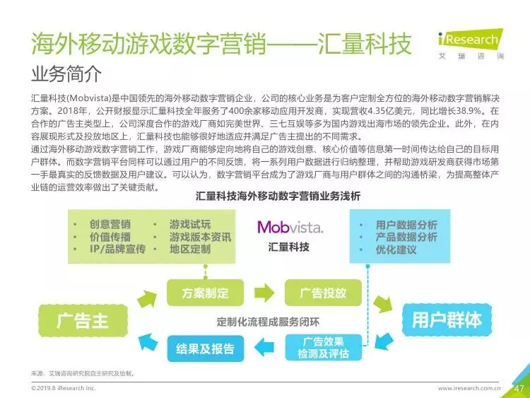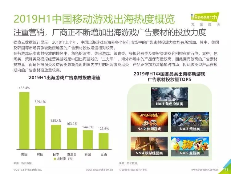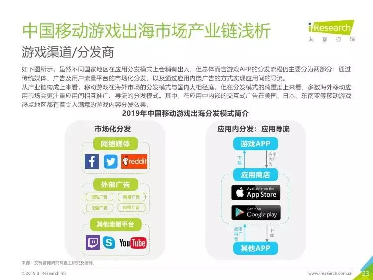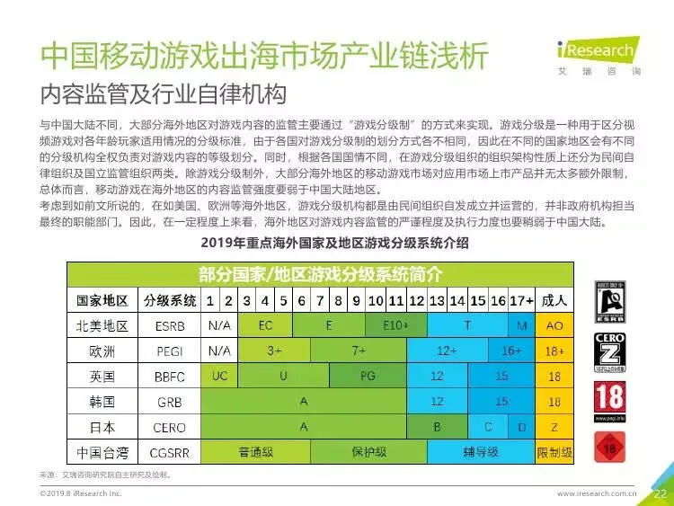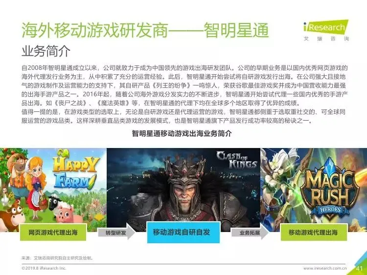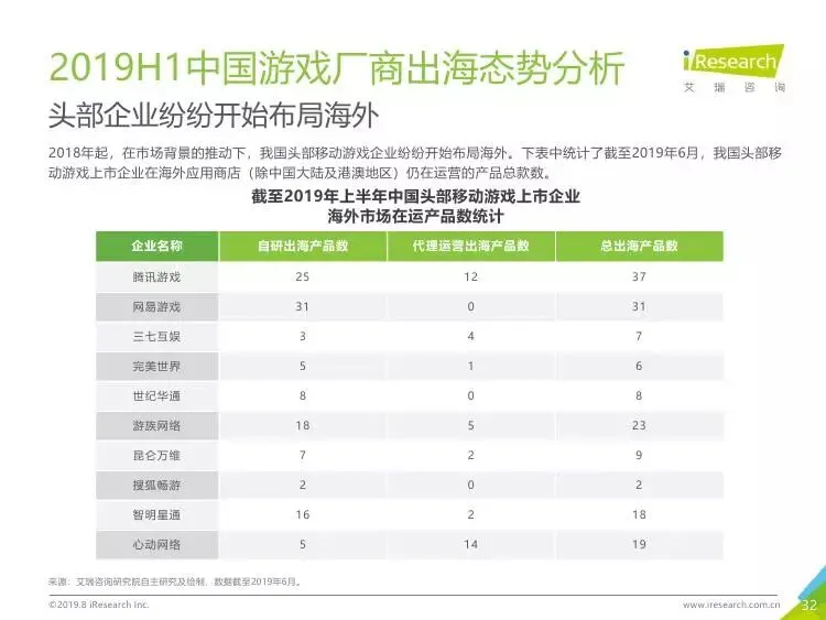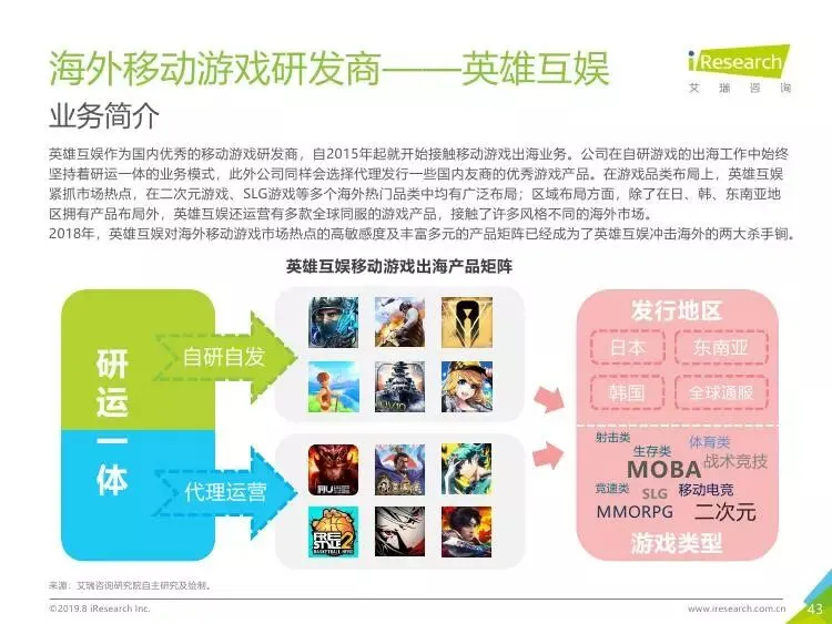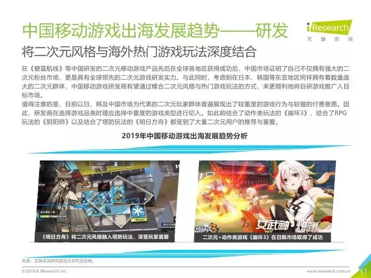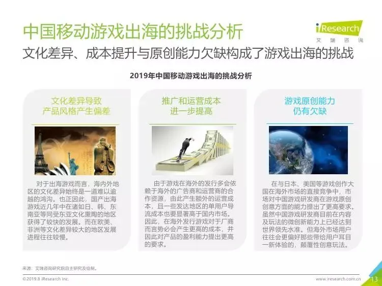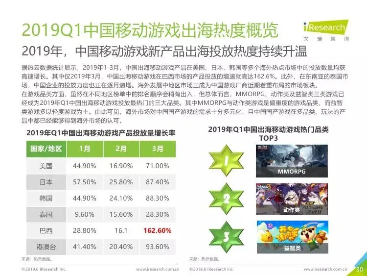2019年中国移动游戏出海行业研究报告》是艾瑞针对中国移动游戏出海市场发布的行业研究报告,报告通过对近两年中国移动游戏出海产品及相关数据的罗列与分析,对整个移动游戏的出海市场现状进行了解读,并展望了市场未来可能的发展趋势。报告中包含了全球游戏市场及用户规模、中国移动游戏出海市场规模、中国移动游戏出海大事件及中国移动游戏出海趋势解读等核心内容。