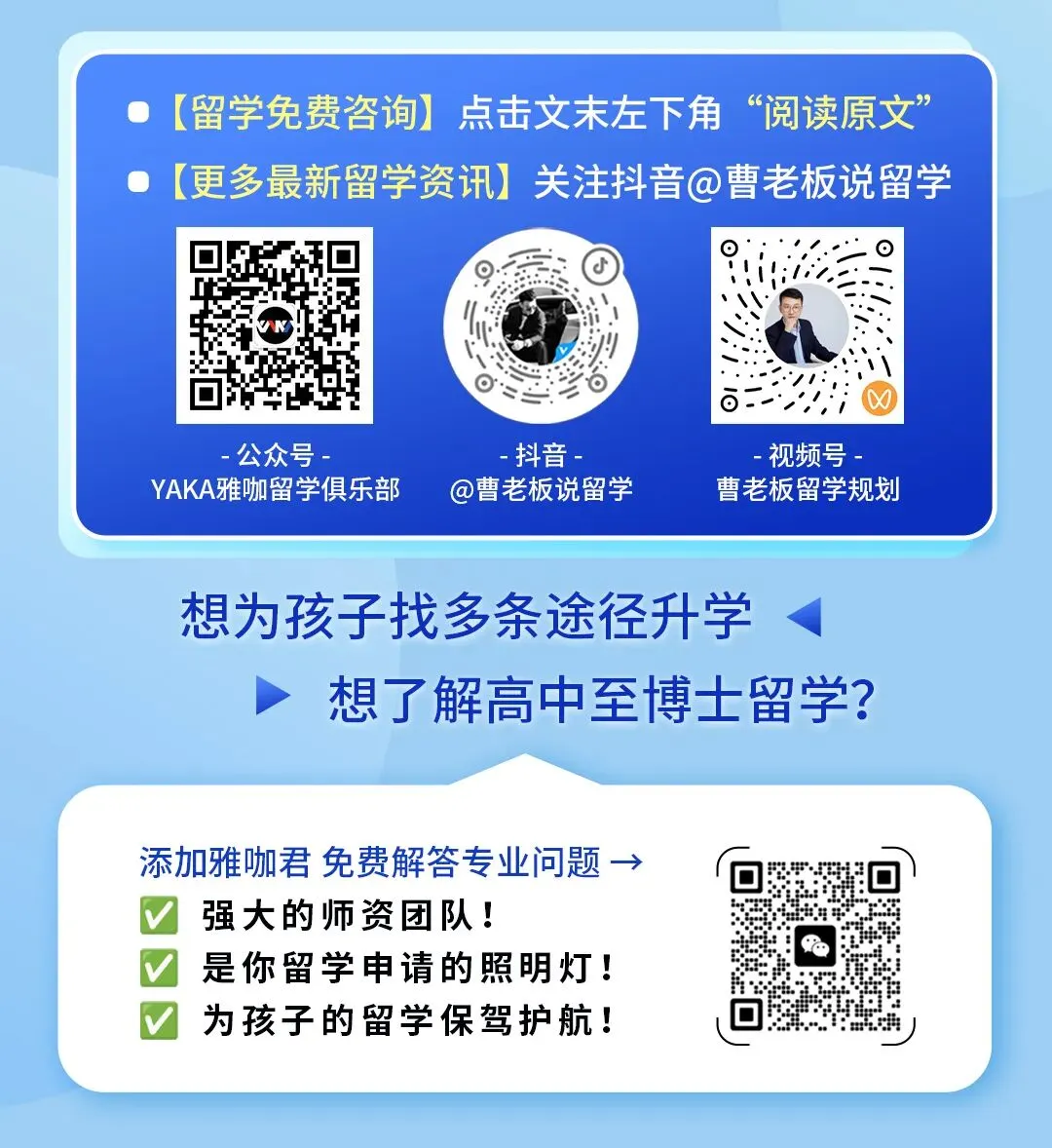 如果同学们有关于留学申请、留学最新政策、签证政策、入境攻略、留学生活等方面的问题,欢迎点击文末左下角“阅读原文”咨询,我们专业的老师将为您详细解答。