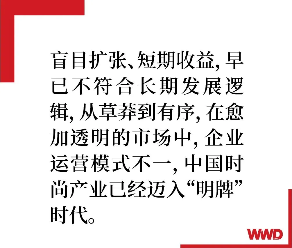 盲目扩张、短期收益,早已不符合长期发展逻辑,从草莽到有序,在愈加透明的市场中,企业运营模式不一,中国时尚产业已经迈入“明牌”时代。
