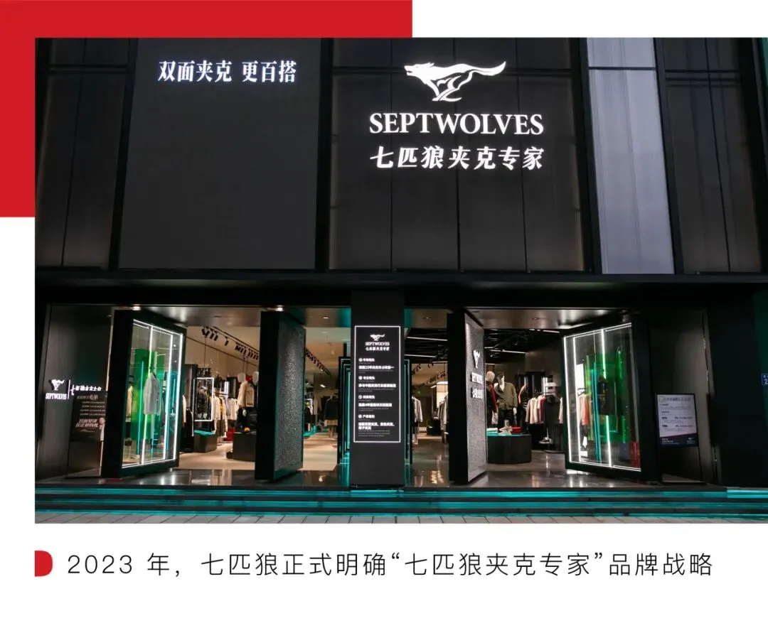 典型如 2023 年净利润同比增长近八成的七匹狼,在其业绩增长的背后,是品牌战略升级的落地执行 —— 2023 年是七匹狼正式明确“七匹狼夹克专家”品牌战略、开启战略升级的元年。
