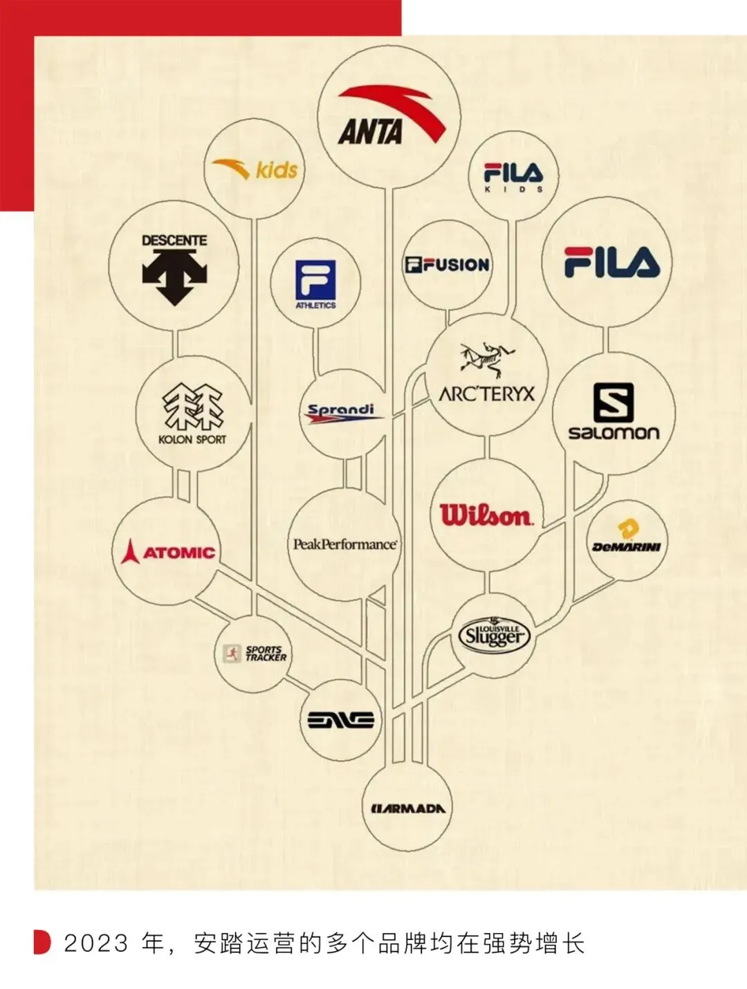 安踏认为,当人们的运动需求越来越多样,运动品牌需要自我切割,把自己做垂直、做专业。2023 年,安踏运营的多个品牌均在强势增长。