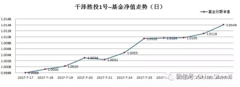 由我团队优秀的操盘手操作,本着风险可控,稳健收益,预期目标超过市场理财收益的私募基金产品已于7月17日开始正式运作,操作起始阶段严格控制风险,设置安全垫,降低回撤风险,目前已过两周时间,净值稳步增长,统计净值波动数据如下: