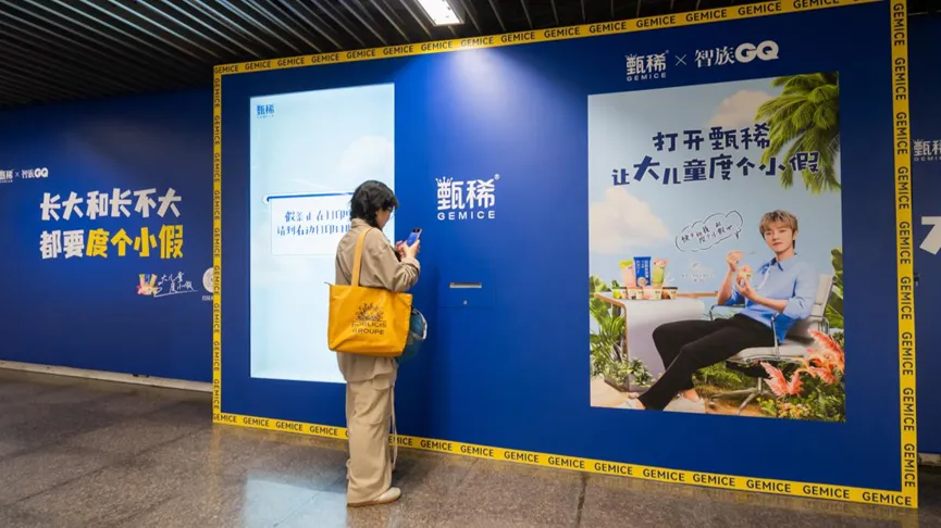 甄稀在上海地铁1号线人民广场站打造了一场趣味互动广告:将静态灯箱升级为电子屏互动装置,乘客只需选择趣味小假理由,就能生成带品牌元素的专属假条并现场打印,之后扫码分享假条至小红书还可参与抽奖,赢取定制周边或冰淇淋兑换券。