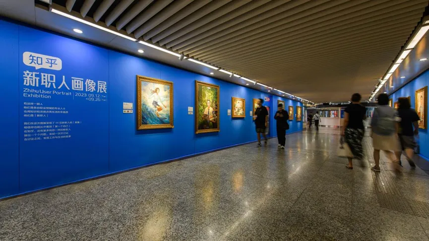 知乎在上海陆家嘴地铁站油画展,是品牌用户共创故事的绝佳范例。14幅画的主角均为知乎真实用户,金融分析师“用调研态度挑眼罩补觉”、护肤品专家“电子秤量食材”,这些真实经历被提炼成画,故事细节源自用户日常分享,而非品牌虚构。