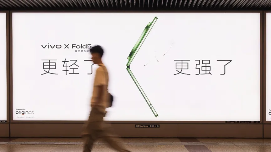 vivo使用非常简洁的表达方式和图案,直观地体现出vivo X Fold5的轻薄特性以及折叠质量。