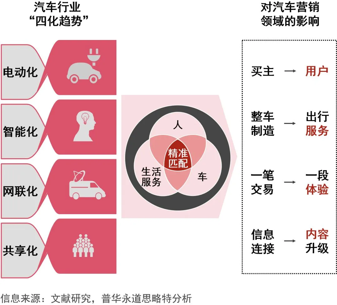另外,汽车行业电动化、智能化、网联化,以及共享化的“四化趋势”也将带来整体行业的产业变革,重塑原有的竞争格局和盈利模式。车企与消费者的连接不再局限于传统的汽车销售与服务,而是转变为用户全生命周期的管理,目的是实现人、车和生活服务的精准匹配;实现高效转化以及保客价值的最大化,建立与用户的可持续关系。