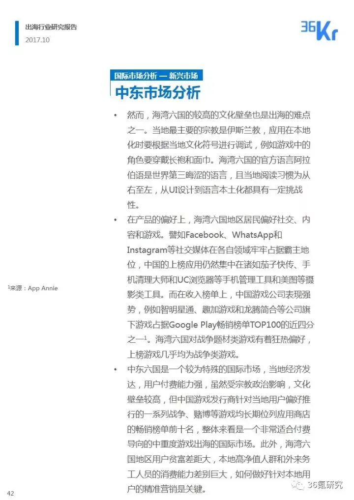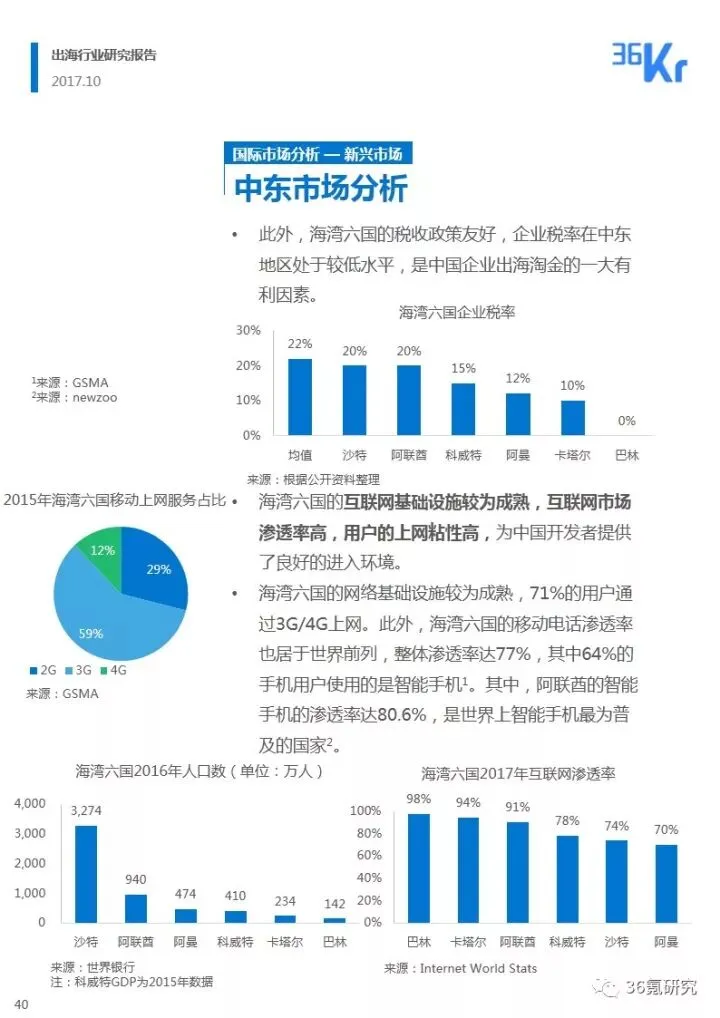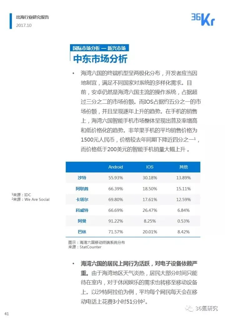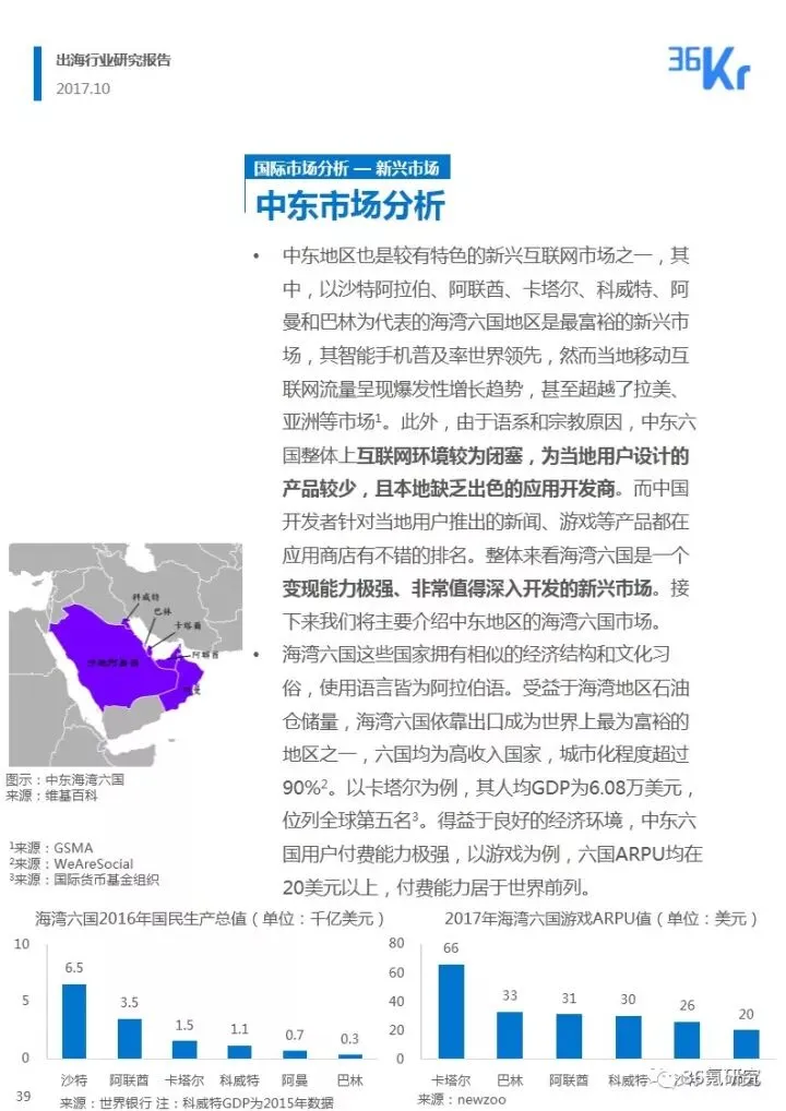 该报告分析了印度、东南亚、巴西、俄罗斯、中东等新兴市场,指出,海湾六国是变现能力极强,非常值得深入开发的新兴市场。另外指出,海湾六国用户贫富差距大,本地高净值人群和外来务工人员的消费能力差别巨大,如何做好本地用户的精准营销是关键。
