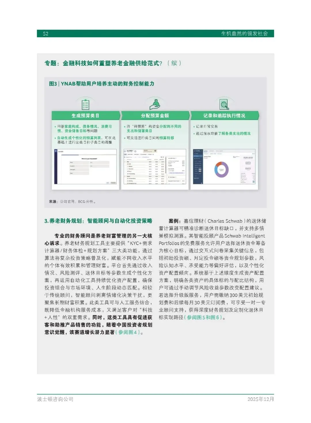 金融科技重塑养老金融供给范式。自动储蓄与微投资工具实现 “被动储蓄”,帮助用户积少成多;全链路现金流管理工具通过实时支出分析、动态预算管理,帮助退休者规划现金流;智能顾问与自动化投资策略将复杂投资策略普及化,为不同收入水平的个体提供专业财务规划服务。这些技术应用提升了财务规划效率与透明度,增强了养老资金的安全性。