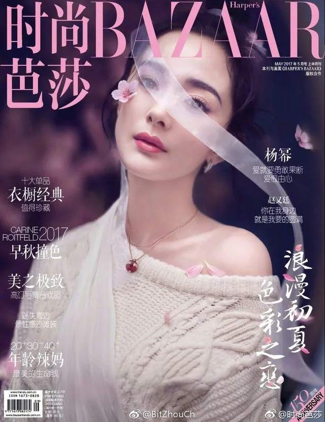 杨幂2017年强势解锁五大一线女刊封面,时尚行业对其时尚地位的认可由此可见一斑。其中,《时尚芭莎》的封面,眼蒙白纱,仿佛白浅姑姑再现,仙气十足,引发了很大的关注。