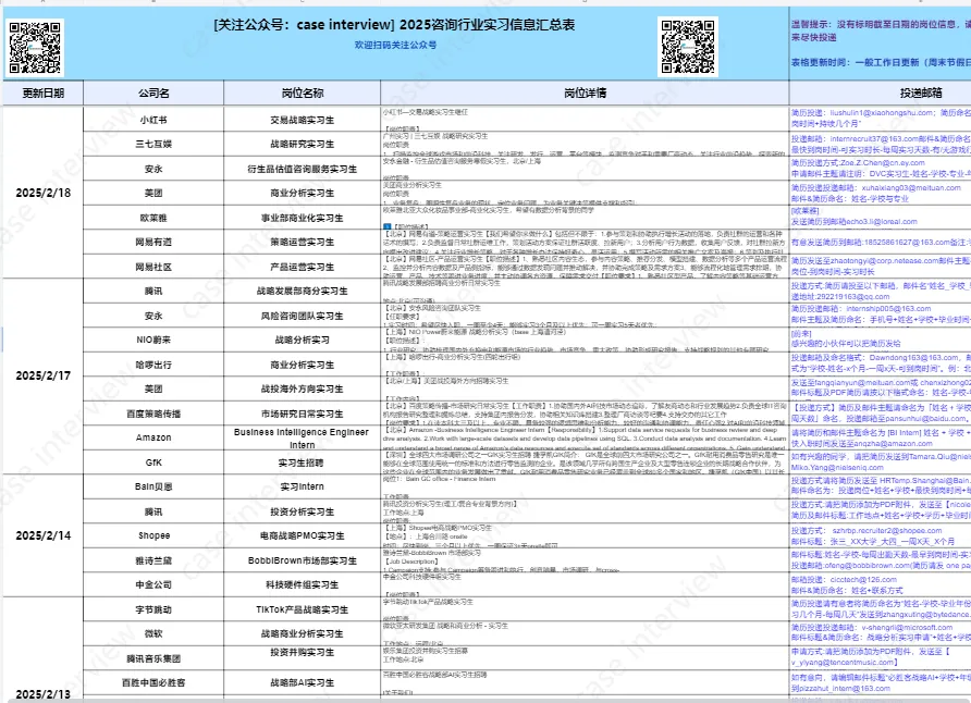 公众号后台回复“实习”申请加入2025咨询实习信息群