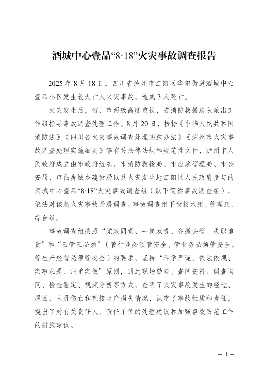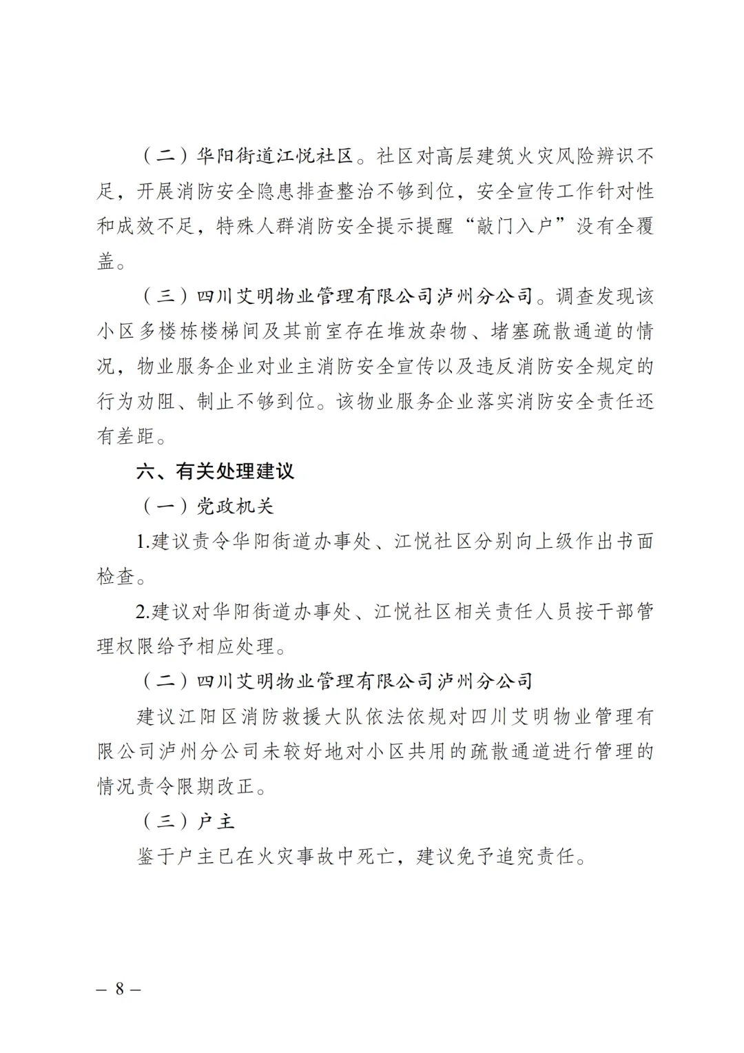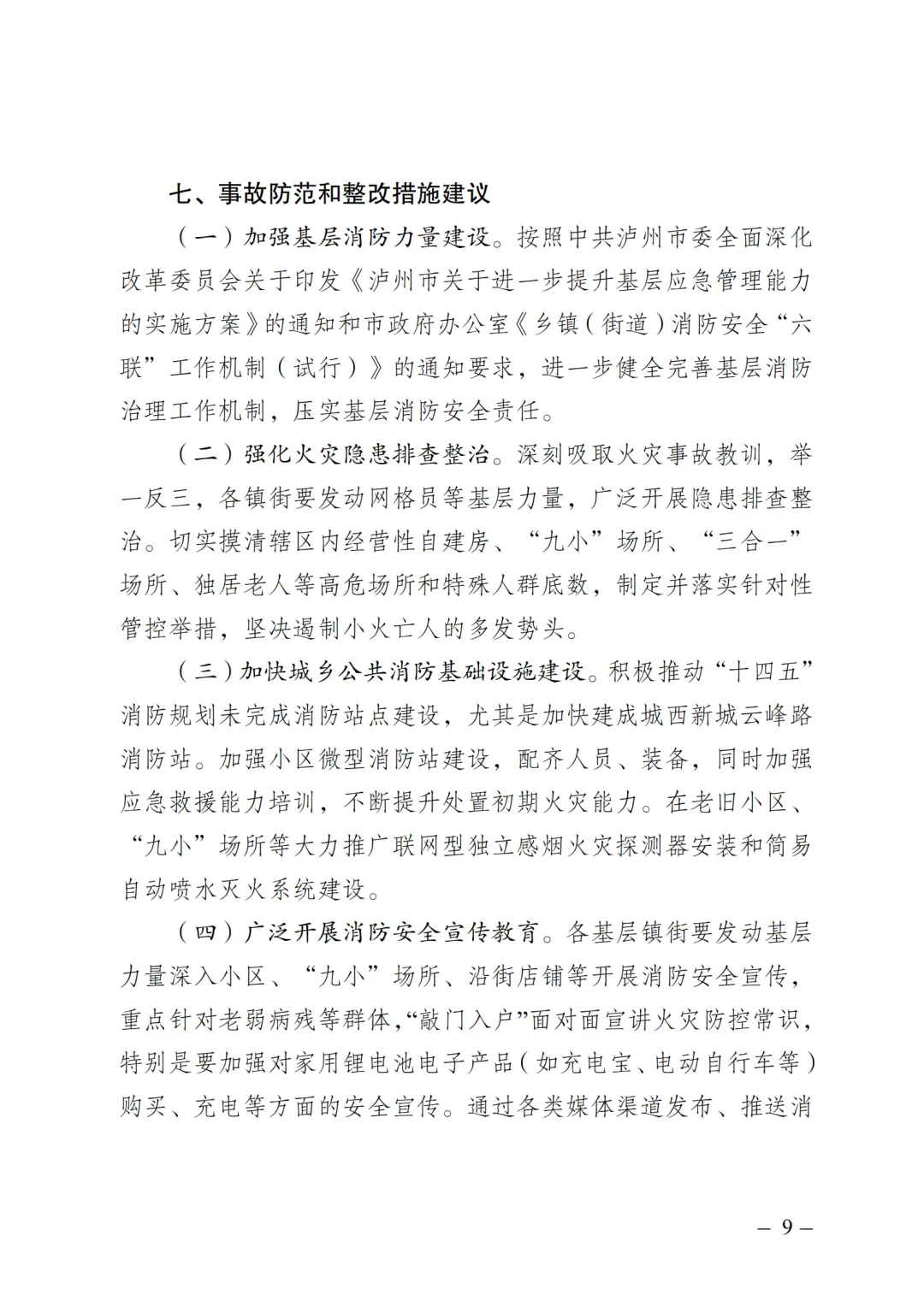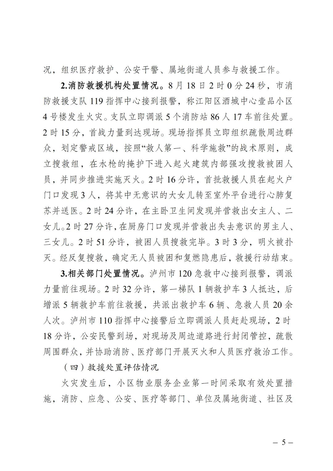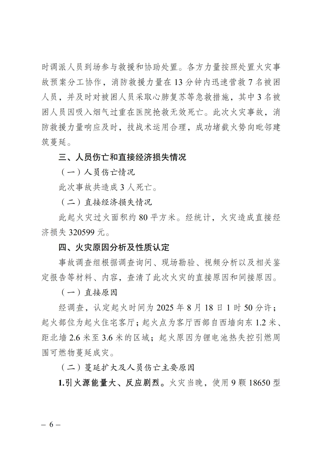 泸州市“8·18”住宅较大火灾事故调查报告:锂电池热失控,街道工作不到位