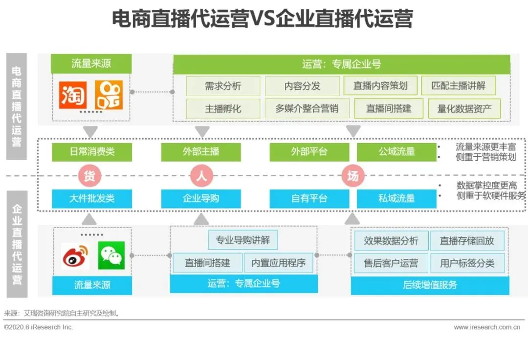 电商直播代运营:是专门为品牌量身定制直播方案的直播服务商,主要直播渠道为公域流量平台的品牌商店铺。