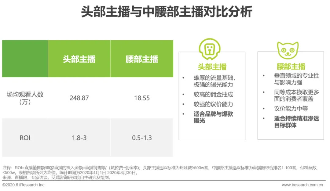 直播平台中,艾瑞认为头部电商>头部内容平台>垂类直播平台
