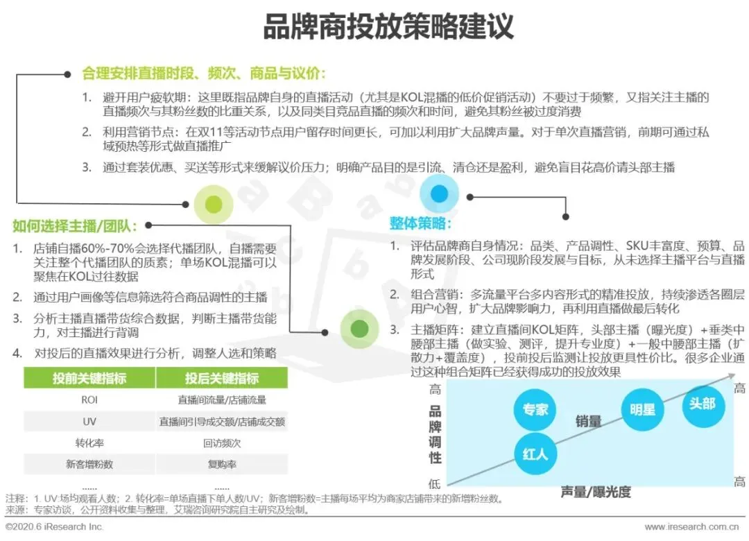 因此,艾瑞认为,进入2.0时代的直播带货将会作为营销工具常态化,低价的刺激作用将会缓慢弱化,专业内容和主播人设的驱动作用和购后成本将得到强化,但由于主播人设难以规模化,未来直播的关键攻破点应在售后的提效和内容的创造,提升运营与供应链能力以吸引更多优质主播与品牌,同时提效降本。