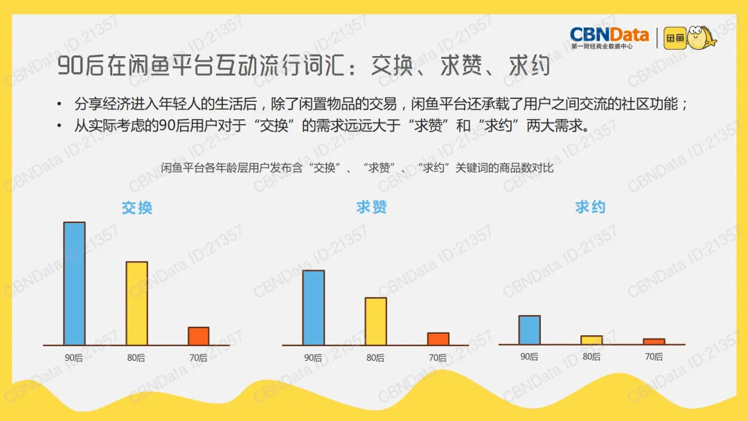 社交属性是 90 后参与分享经济的核心驱动力。他们偏好通过兴趣社群聚集,90 后用户平均加入 4 个鱼塘,高于全量人群平均水平,动漫手办、二手相机、汉服等兴趣鱼塘用户量突出,深圳大学、北京大学等高校鱼塘成为校园旧物再利用的重要渠道。交易过程中,90 后更爱发布含 “交换”“求赞”“求约” 关键词的商品,面交模式不仅是交易方式,更成为独特的社交场景,形成圈群化社交生态。