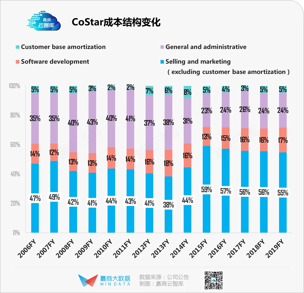 值得注意是,为跟上数字化更迭步伐,此期间CoStar砸了重金来做研发。2014-2019财年,其研发费用从0.55亿美元增至1.26亿美元,年均复合增长率为17.85%。